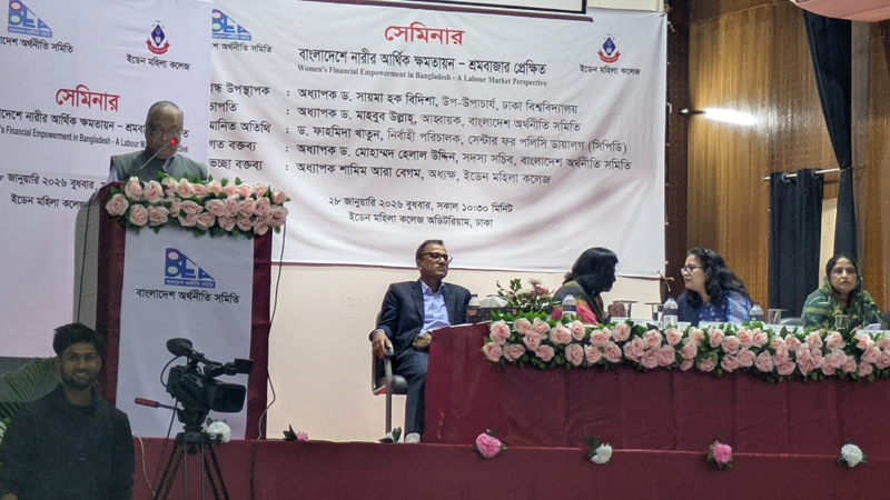 আজ বুধবার (২৮ জানুয়ারি) ঢাকার ইডেন কলেজে বাংলাদেশ অর্থনীতি সমিতি আয়োজিত ‘বাংলাদেশে নারীর আর্থিক ক্ষমতায়ন: শ্রমবাজার প্রেক্ষিত’ শীর্ষক সেমিনারে এসব মন্তব্য করেন বক্তারা।