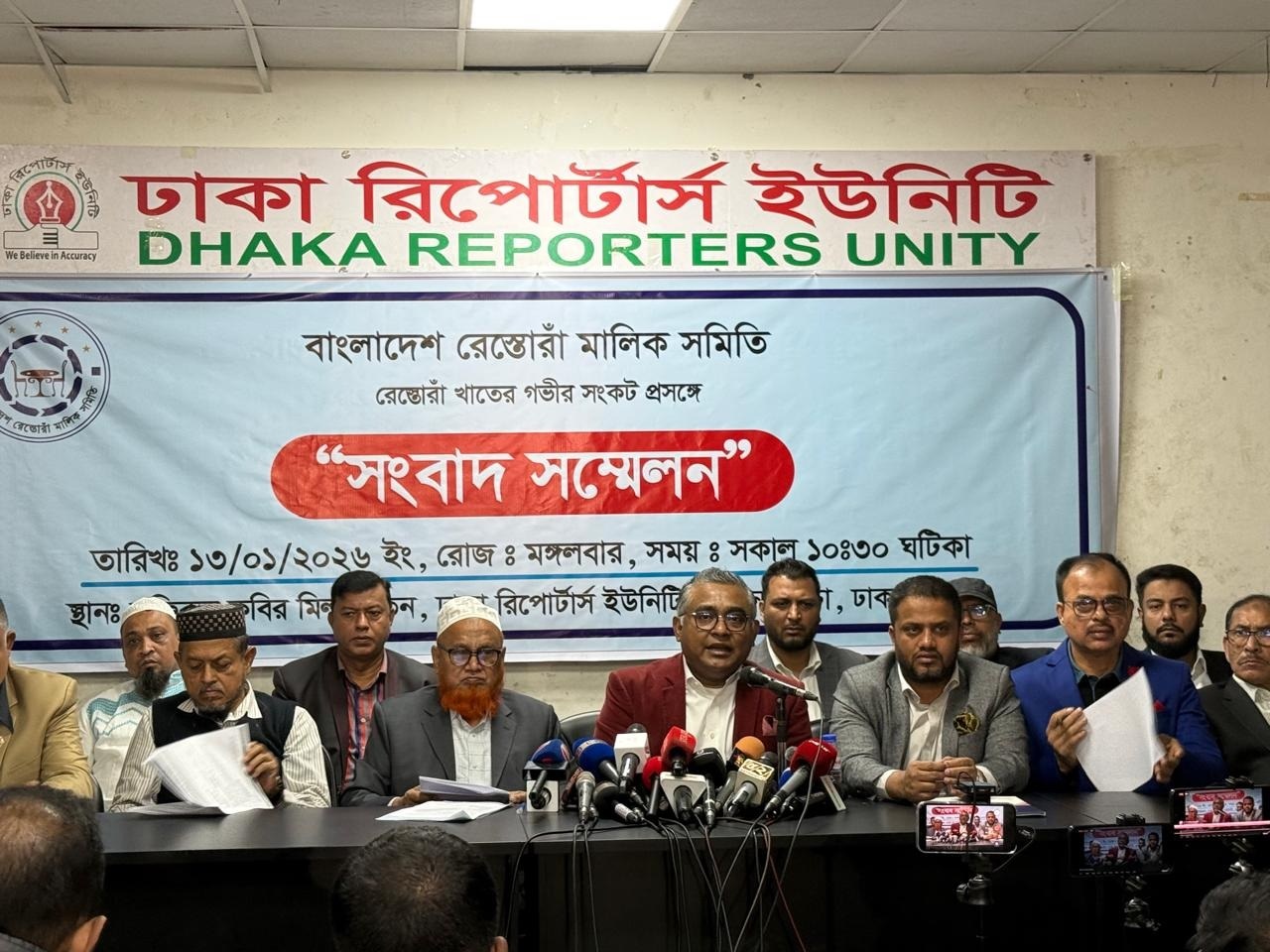 মঙ্গলবার (১৩ জানুয়ারি) ঢাকা রিপোর্টার্স ইউনিটিতে (ডিআরইউ) এক সংবাদ সম্মেলনে এসব কথা বলেন বাংলাদেশ রেস্তোরাঁ মালিক সমিতির সদস্যরা।