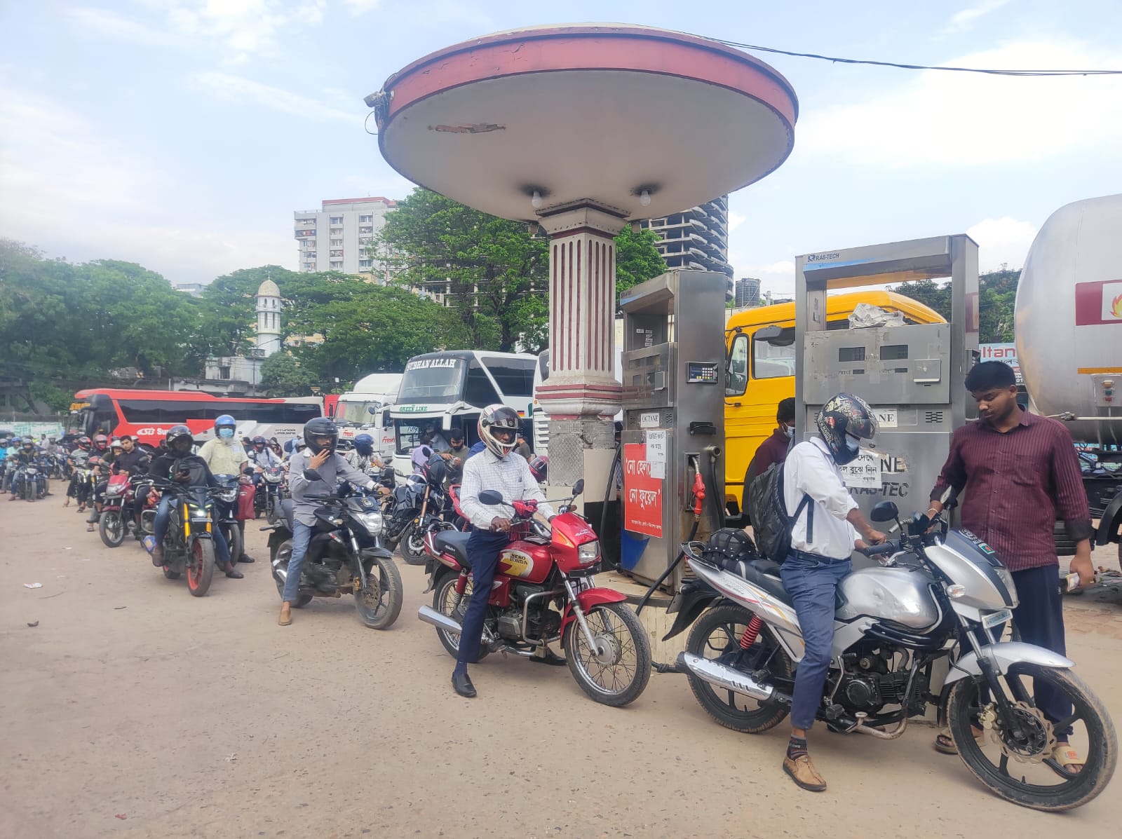ওই লাইনে দাঁড়ানো আরও অনেকের মুখেই ছিল বিরক্তির সুর। চাহিদামতো তেল না পেয়ে হতাশা প্রকাশ করেন তারা। মোটরসাইকেল প্রতি ৩০০ টাকার এবং প্রাইভেট কারগুলো ১৫০০ থেকে ২০০০ টাকার তেল কিনতে পারলেও কেউই সন্তুষ্ট ছিলেন না।