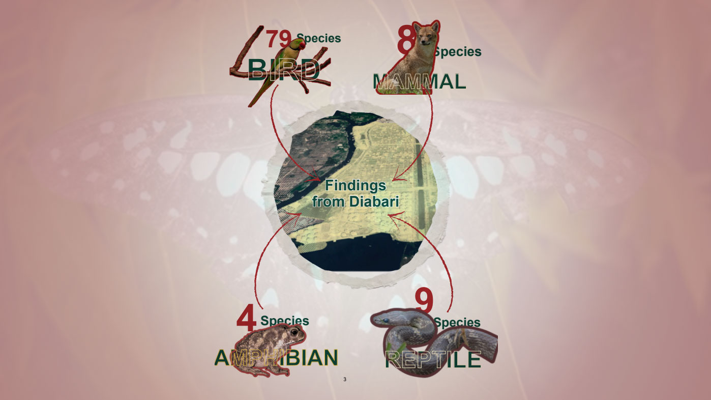 চারদিকে রাজধানী উন্নয়ন প্রকল্পের (রাজউক) আবাসন প্রকল্প আর দ্রুত বাড়তে থাকা কংক্রিটের জঙ্গল। চলছে জলাভূমি ভরাটের মহোৎসব। কিন্তু এর মাঝেই যেন এক টুকরো স্বস্তি হয়ে টিকে আছে ঢাকার উত্তরা সংলগ্ন দিয়াবাড়ি এলাকার প্রকৃতি। অবাক করা বিষয় হলো, এই খণ্ডিত জলাভূমি এবং ঝোপঝাড়ের মাঝেই ৭৯ প্রজাতির পাখি, ৮ প্রজাতির স্তন্যপায়ী এবং ১৩ প্রজাতির সরীসৃপ ও উভচর প্রাণী টিকে আছে।
