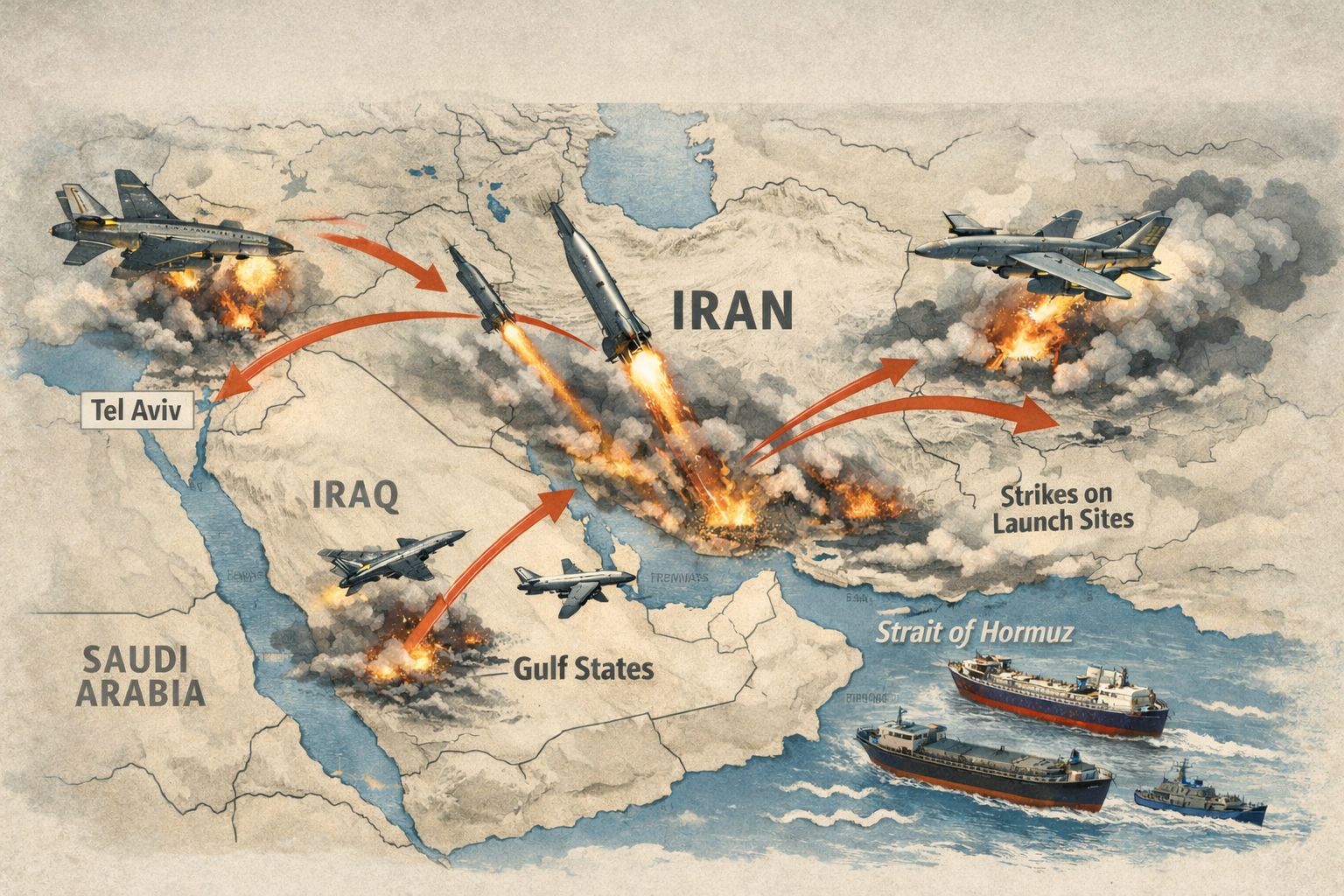 এরইমধ্যে বিশ্ববাজারে তেলের দাম প্রতি ব্যারেল ১০০ ডলারের বেশি ছাড়িয়ে গেছে। কাতার গ্যাস উৎপাদন সাময়িকভাবে বন্ধ রেখেছে, বাহরাইনের রাষ্ট্রায়ত্ত তেল কোম্পানি তাদের চালানের ওপর ‘ফোর্স মাজ্যুর’ ঘোষণা করেছে এবং ইরাকের দক্ষিণাঞ্চলের প্রধান তেলক্ষেত্রগুলোতে উৎপাদন প্রায় ৭০ শতাংশ কমে গেছে।