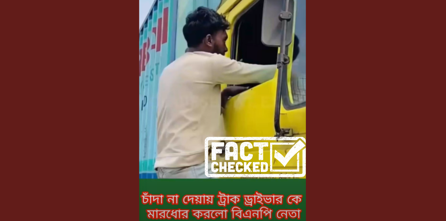 সম্প্রতি সামাজিক যোগাযোগমাধ্যম ফেসবুকে একটি ভিডিও ছড়িয়ে পড়েছে। ওই ভিডিওতে দাবি করা হয়, চাঁদা না দেওয়ায় ট্রাকচালককে বিএনপির একজন নেতা প্রকাশ্যে মারধর করেছেন (১,২)। কোথাও কোথাও তাকে শ্রমিক দলের নেতা বলেও উল্লেখ করা হয়।
