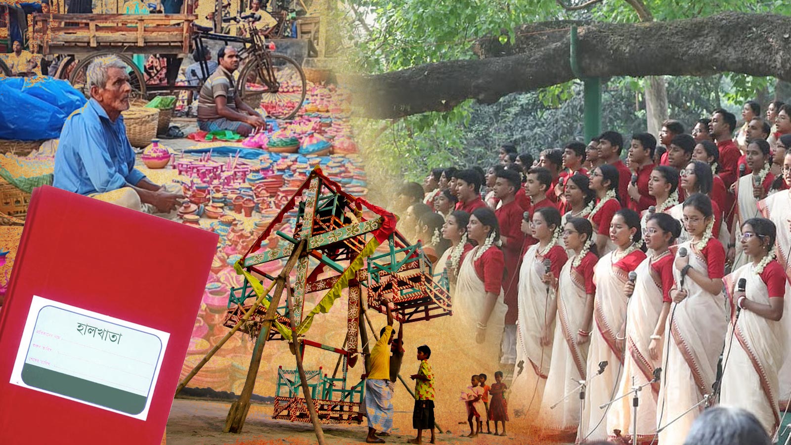 গ্রামে পয়লা বৈশাখ মানে ছিল কৃষিজীবনের নতুন হিসাব। পুরোনো দেনা-পাওনা মিটিয়ে নতুন খাতা খোলা—হালখাতা শুধু অর্থনৈতিক কাজ ছিল না, ছিল সম্পর্কেরও পুনর্নবীকরণ। দোকানদার গ্রাহককে মিষ্টি খাওয়াতেন, মানুষজন নতুন কাপড় পরে মেলায় যেত। উৎসবটা ছিল মানুষের, খুব কাছের, খুব সহজ।