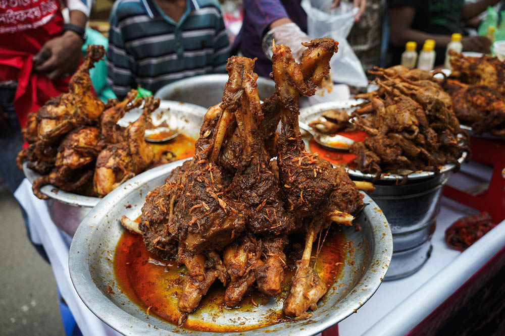 সবচেয়ে আকর্ষণীয় আইটেম হিসেবে একটি আস্ত খাসির কাবাব। এ ছাড়া মুরগি, কোয়েল পাখির রোস্ট , গরুর কালা ভুনা পাওয়া যাবে এই ইফতার বাজারে। বিক্রেতারা ছোলা, আলুর চপ, বেগুনি, পিঁয়াজু, জিলাপি, বুন্দিয়া, ঘুগনি, পাকোড়া, চিড়া-মুড়ি, দই-চিড়া, নুডলস, চিকেন ফ্রাই, চিকেন, ঝালফ্রাই, চিকেন তন্দুরি, চিকেন টিক্কা, চিকেন কাবাব, চিকেন বল, চিকেন পরোটা, চিকেন গ্রিল, শাহী হালিম, বিরিয়ানিসহ মজাদার ইফতারসামগ্রীর পশরা সাজিয়ে বসেছেন। হাজারো ক্রেতা সেখানে ভিড় করছেন পছন্দের পদের ইফতারি কিনতে।