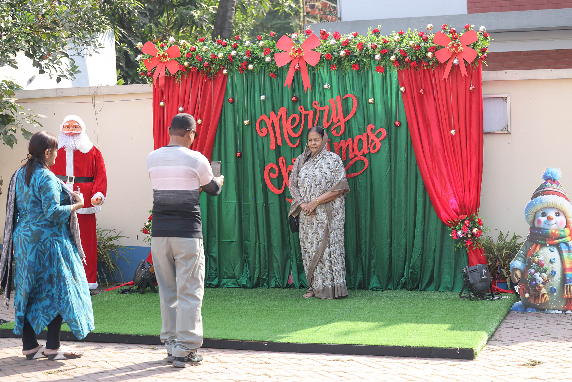 গির্জার প্রবেশ পথে সান্তাক্লজ এর প্রতিকৃতি রাখা হয়েছে
