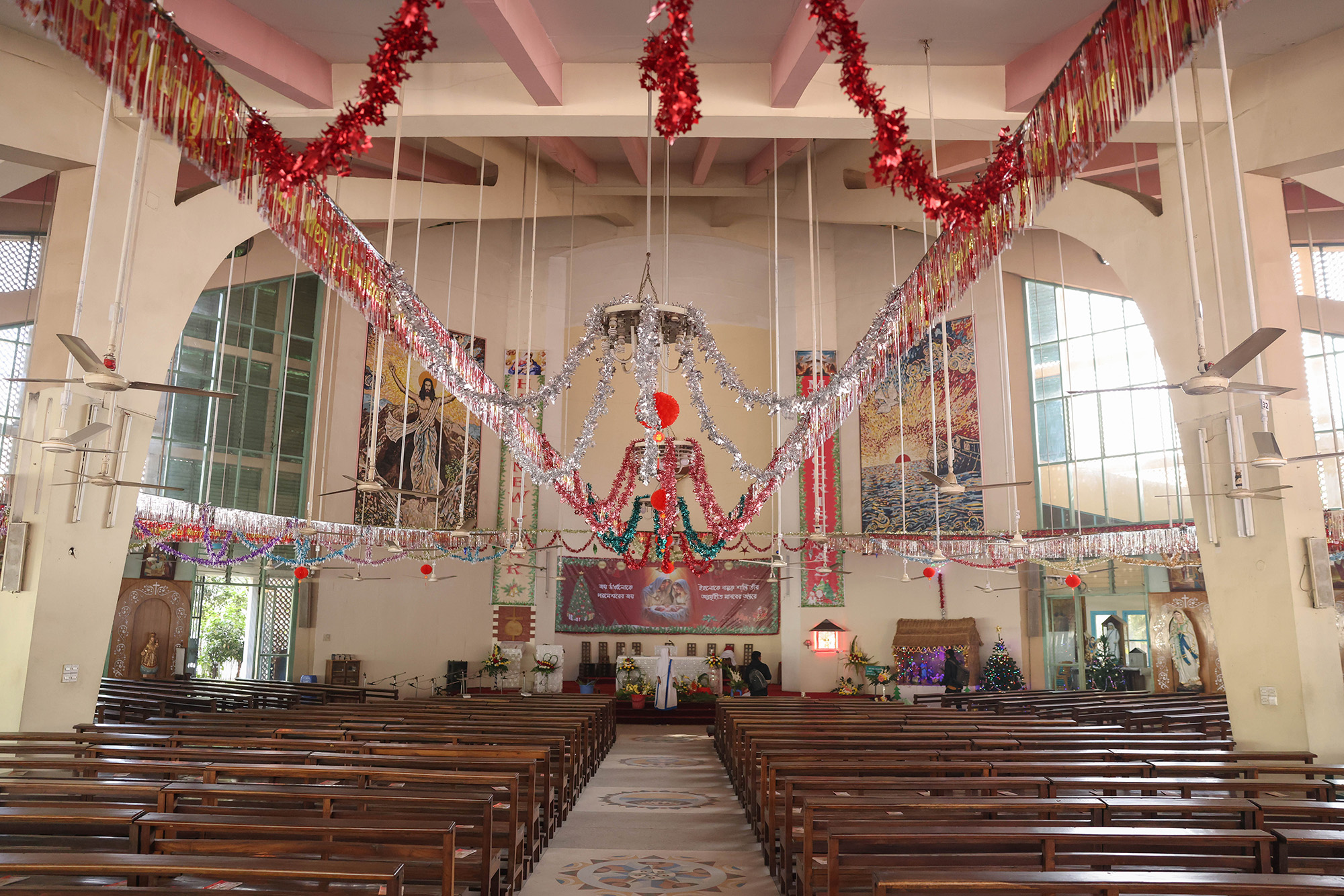 পবিত্র জপমালা রানী গির্জা ভেতরে প্রার্থনার স্থান সাজানো হয়েছে