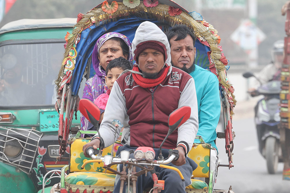 শীতের মধ্যে গরম কাপড় মুড়িয়ে গন্তব্যে যাচ্ছে একটি পরিবার