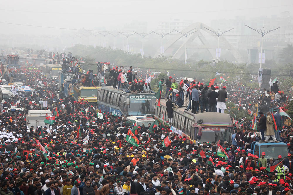 বিকেল ৪টার কিছু আগে পূর্বাচলে ‘জুলাই ৩৬ এক্সপ্রেসওয়ে’তে আয়োজিত সংবর্ধনা মঞ্চে ওঠেন বিএনপির ভারপ্রাপ্ত চেয়ারম্যান। লাখো মানুষের উপস্থিতিতে বক্তৃতা করেন তিনি।
