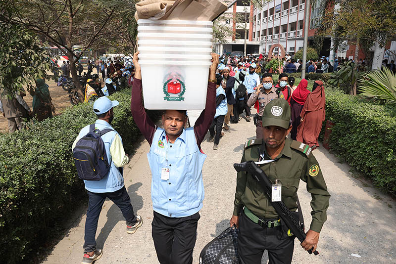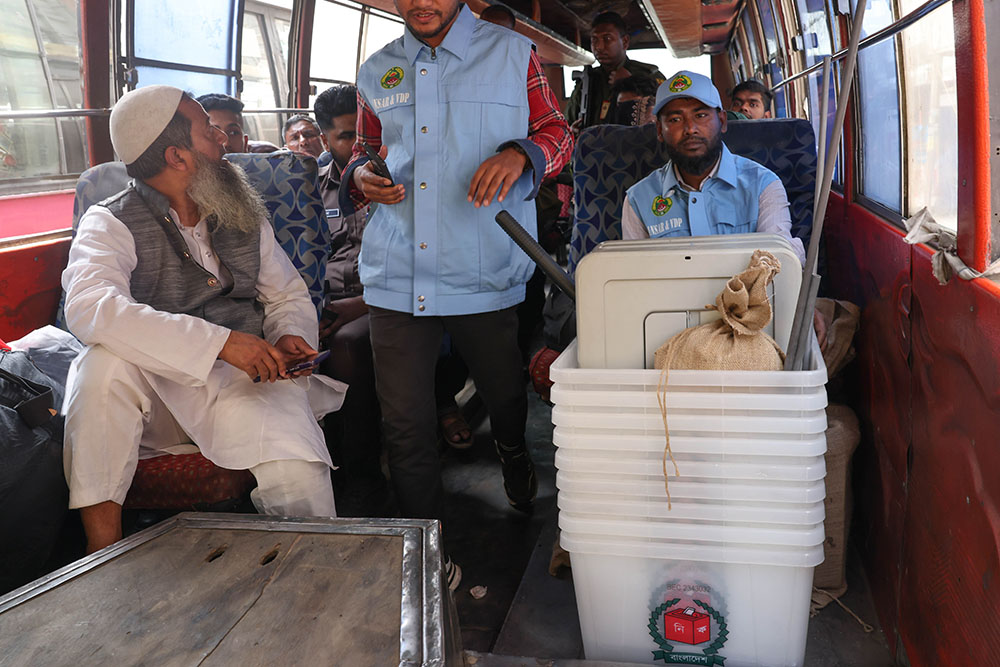 ত্রয়োদশ জাতীয় সংসদ নির্বাচনের ভোট গ্রহণ অনুষ্ঠিত হবে আগামীকাল বৃহস্পতিবার। সকাল সাড়ে সাতটায় শুরু হয়ে একটানা বিকেল সাড়ে চারটা পর্যন্ত চলবে। একইসঙ্গে অনুষ্ঠিত হবে গণভোট। নির্বাচন কমিশন ইতিমধ্যে সব প্রস্তুতি সম্পন্ন করেছে। আজ বুধবার রাতের মধ্যেই ব্যালট পেপারসহ প্রয়োজনীয় সব নির্বাচনী সরঞ্জাম সংশ্লিষ্ট ভোটকেন্দ্রে পৌঁছে যাবে। রাজধানীর বিভিন্ন স্কুল ও কলেজ থেকে নির্বাচনী সামগ্রী পাঠানো হচ্ছে কেন্দ্রগুলোতে। নিরাপত্তা নিশ্চিতে সড়কগুলোতে সেনাবাহিনী ও যৌথবাহিনীর টহল ও তল্লাশি জোরদার করা হয়েছে। নির্বাচনকে ঘিরে যানবাহন চলাচলেও আরোপ করা হয়েছে সীমিত বিধিনিষেধ। রাজধানীর বিভিন্ন এলাকা থেকে আজ এসব প্রস্তুতির চিত্র ধারণ করা হয়েছে।