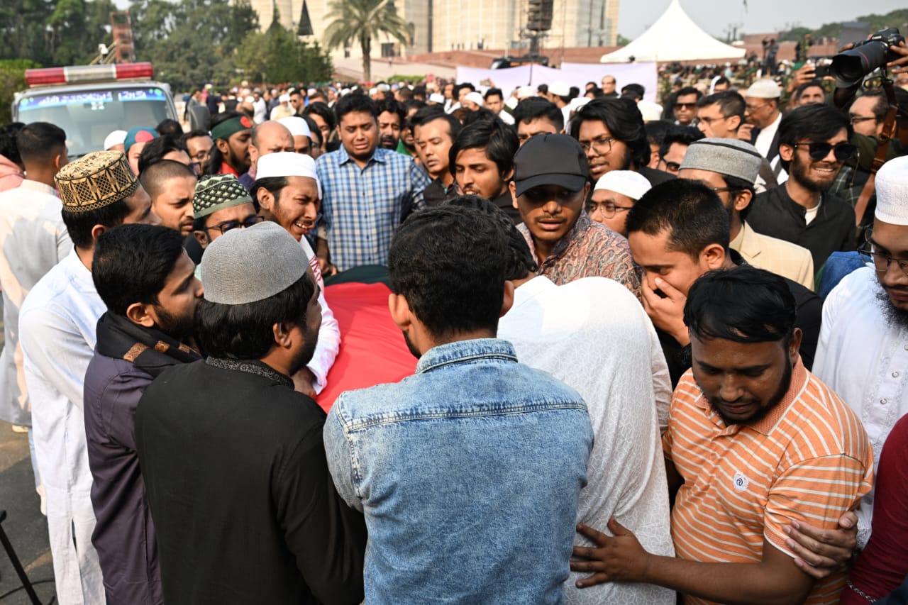 জুলাই গণ-অভ্যুত্থানের অন্যতম নেতা ও ইনকিলাব মঞ্চের মুখপাত্র শরীফ ওসমান হাদির জানাজাকে কেন্দ্র করে জাতীয় সংসদ ভবন এলাকায় নেমে আসে শোকের ছায়া। জাতীয় পতাকায় মোড়ানো কফিনে শুয়ে থাকা এই বীর যোদ্ধাকে শেষ বিদায় জানাতে হাজারো মানুষের ঢল নামে সংসদ চত্বরে। জানাজায় অংশ নিয়ে বক্তব্য রাখেন প্রধান উপদেষ্টা ড. মুহাম্মদ ইউনূস। প্রিয় সহযোদ্ধার কফিনে শেষবারের মতো হাত বুলিয়ে কান্নায় ভেঙে পড়েন দীর্ঘদিনের রাজনৈতিক সতীর্থরা। অশ্রুসিক্ত চোখে কাতারবদ্ধ হয়ে হাজারো মুসল্লি আদায় করেন জানাজার নামাজ।