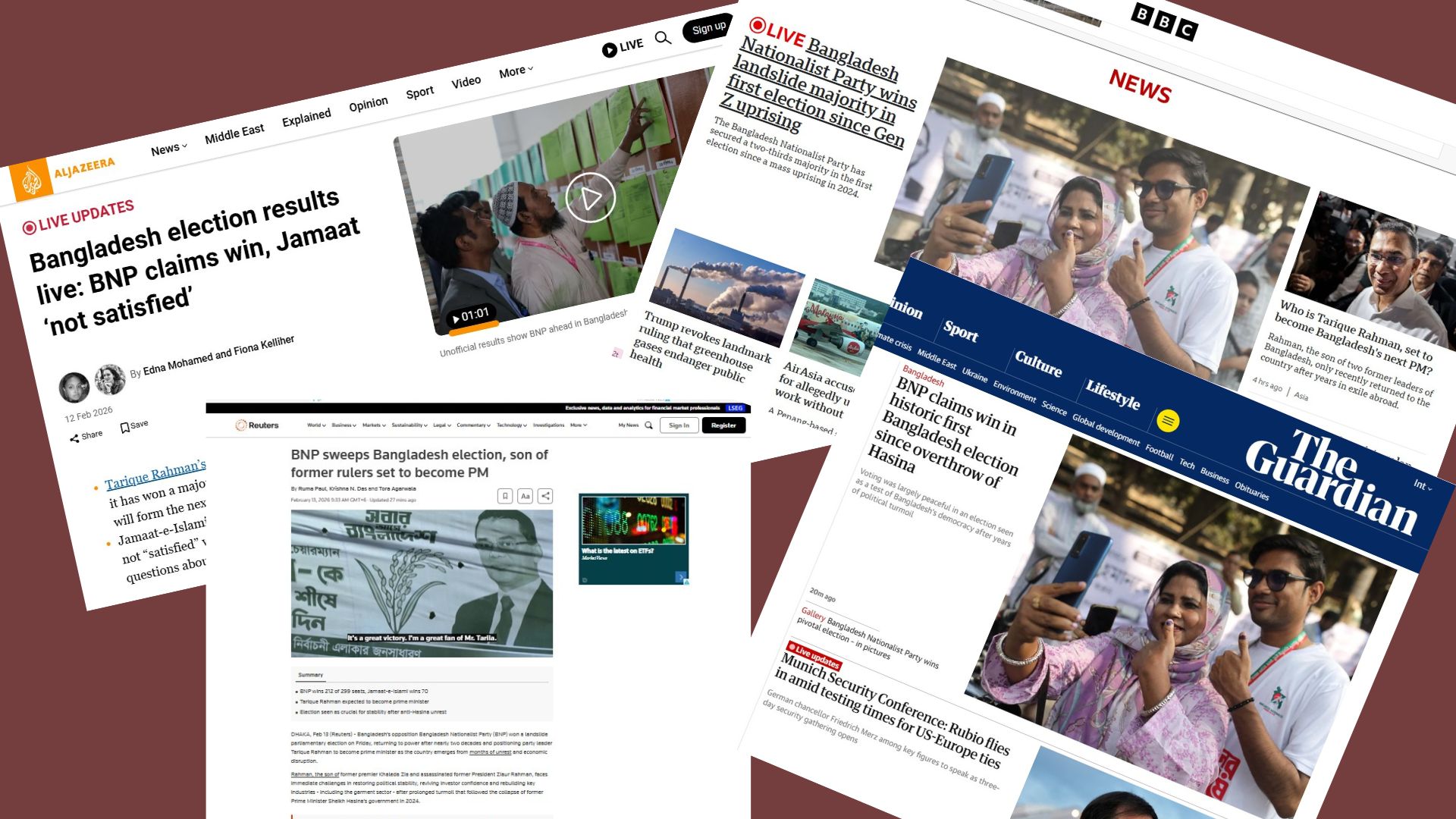 সদ্য শেষ হওয়া ত্রয়োদশ জাতীয় সংসদ নির্বাচন ও গণভোটের খবর প্রকাশ করেছে বিশ্বের বিভিন্ন গণমাধ্যম। ২০২৪ সালে ছাত্র-জনতার অভ্যুত্থানে শেখ হাসিনা সরকারের পতনের পর অনুষ্ঠিত এ নির্বাচনকে বেশ গুরুত্ব দিয়ে স্থান দিয়েছে তারা।