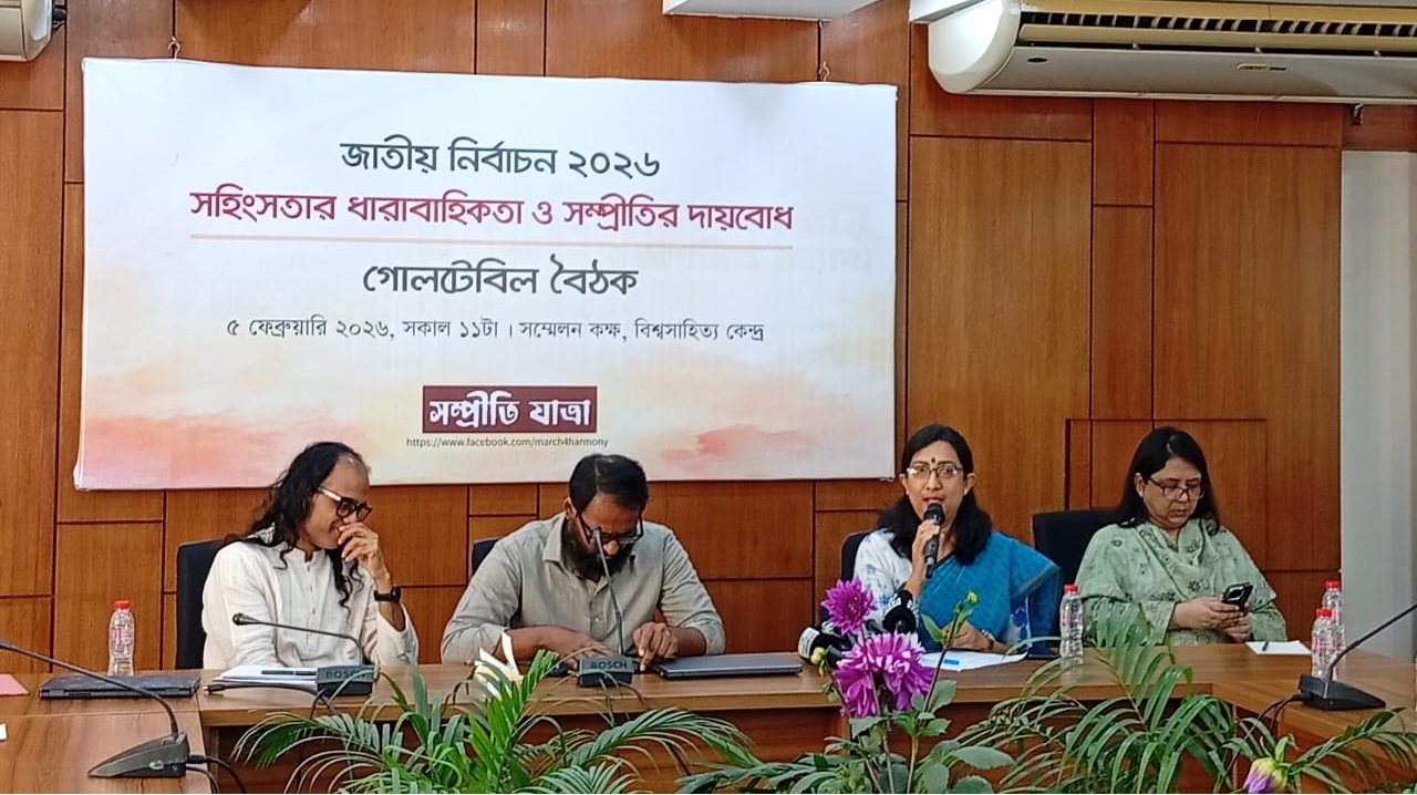 দেশে চলমান রাজনৈতিক সহিংসতা, ‘মব জাস্টিস’, সংখ্যালঘুদের ওপর হামলা এবং আসন্ন নির্বাচনের সময় নিরাপত্তাসহ বিভিন্ন ইস্যু নিয়ে রাজধানীতে এক গোলটেবিল বৈঠক অনুষ্ঠিত হয়েছে। বৈঠকে বক্তারা বলেন, আইন ও প্রশাসনের নিষ্ক্রিয়তা এবং বিচারহীনতার সংস্কৃতির কারণেই দেশে সম্প্রীতি নষ্ট হচ্ছে।