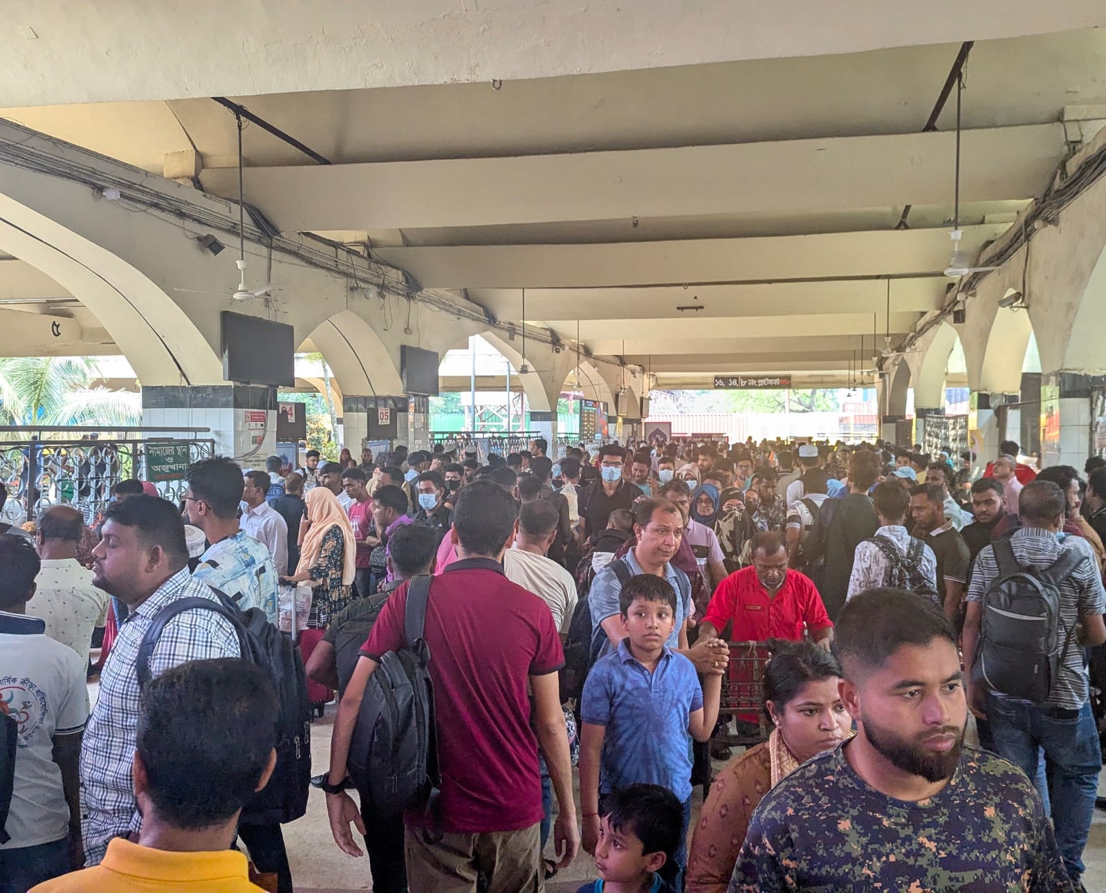 ঈদের ছুটির দ্বিতীয় দিনে দুপুরের দিকে কমলাপুর রেলস্টেশনে যাত্রীর চাপ বেড়েছে। স্টেশনে তুলনামূলক নিয়ন্ত্রিত পরিবেশ ও দৃশ্যমান নিরাপত্তা থাকলেও সিট-সংকটের অভিযোগ পাওয়া গেছে। এদিকে চিলাহাটিগামী নীলসাগর এক্সপ্রেস ট্রেনের ৭টি বগি লাইনচ্যুত হয়েছে। উত্তরবঙ্গের রেলযোগাযোগ বন্ধ হয়ে গেছে।