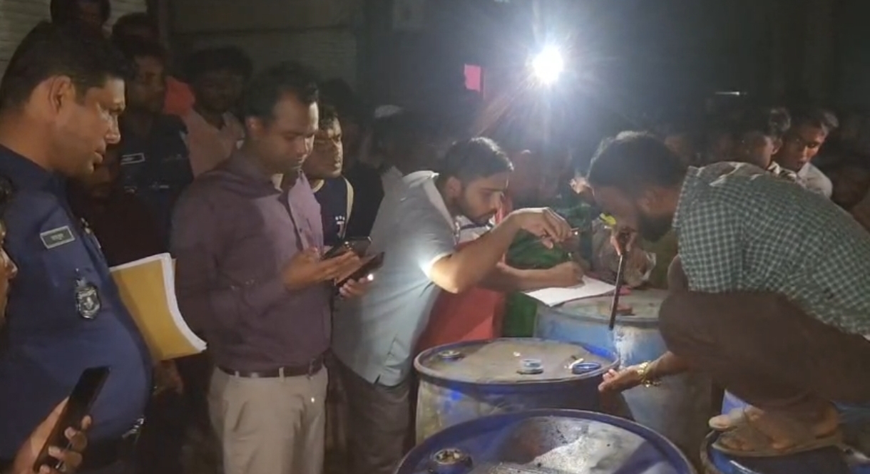 হ্মণবাড়িয়ার নাসিরনগরে মুদি মালের দোকানে অবৈধভাবে মজুত করা ৫ হাজার লিটার জ্বালানি তেল জব্দ করেছে উপজেলা প্রশাসন। বুধবার রাতে উপজেলার পূর্বভাগ ইউনিয়নের পূর্বভাগ নতুনবাজারে চালানো অভিযান এসব তেল জব্দ করা হয়। একই সঙ্গে দোকান মালিককে ১০ হাজার টাকা জরিমানা করেন ভ্রাম্যমাণ আদালত।