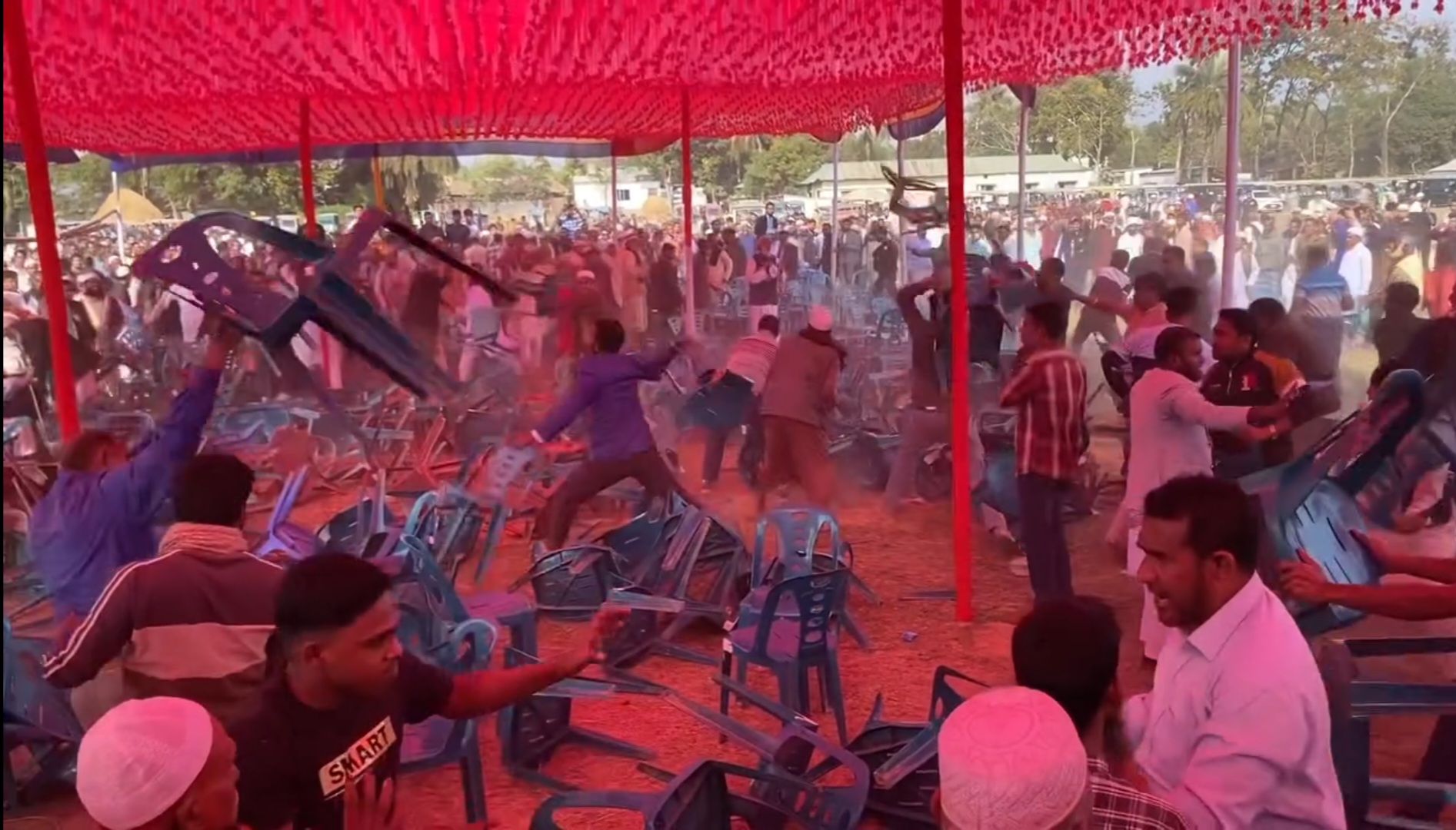 শেরপুরের ঝিনাইগাতীতে ইউএনও, ওসি ও প্রার্থীদের সামনেই সংঘর্ষে জড়িয়েছেন বিএনপি ও জামায়াতের নেতাকর্মীরা। নির্বাচনী ইশতেহার ঘোষণা অনুষ্ঠানে চেয়ারে বসা নিয়ে এই সংঘর্ষ হয়। এতে উভয় পক্ষের অন্তত ৩০ জন কর্মী-সমর্থক আহত হয়েছেন। জ্বালিয়ে দেওয়া হয়েছে একটি মোটরসাইকেল।