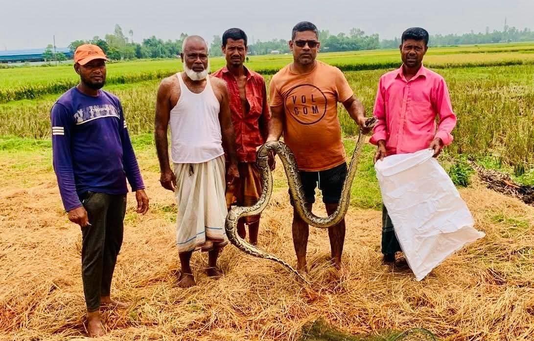 মৌলভীবাজারের শ্রীমঙ্গল উপজেলার হাইল হাওরে মৎস্যজীবীদের জালে ধরা পড়েছে প্রায় ১০ ফুট দীর্ঘ একটি অজগর। রবিবার (১৯ এপ্রিল) সকালে উপজেলার জেটি রোড সংলগ্ন হাওরে ধরা পড়া অজগরটি পরিবেশকর্মীরা উদ্ধারে করে। এর ওজন প্রায় ১৫ কেজি বলে জানা গেছে।