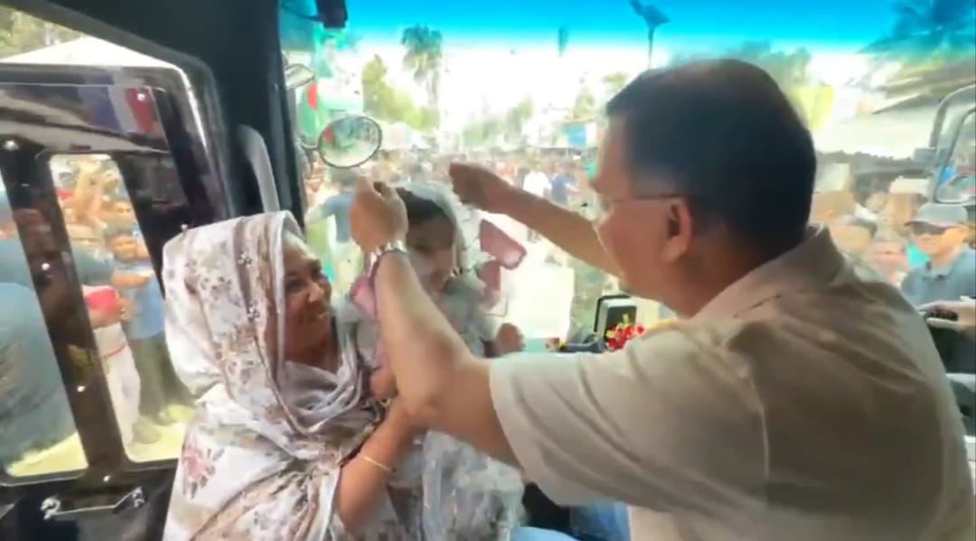 গাবতলীর বাগবাড়িতে পৈতৃক ভিটায় যাওয়ার পথে এক শিশু প্রধানমন্ত্রীকে টাকার মালা পরিয়ে বরণ করেছে। এ সময় প্রধানমন্ত্রী শিশুটির কাছ থেকে টাকার মালা গ্রহণ করেন এবং পরে সেটি আবার তার গলায় পরিয়ে দেন।