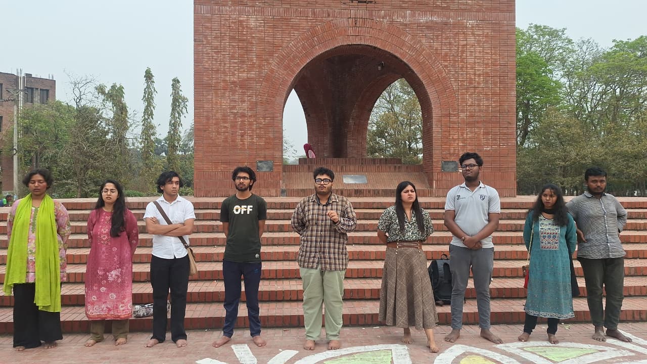 মঙ্গলবার (২৪ ফেব্রুয়ারি) বিকেল সাড়ে ৩টার দিকে বিশ্ববিদ্যালয়ের শহীদ মিনার প্রাঙ্গণে ‘নিপীড়নের বিরুদ্ধে জাহাঙ্গীরনগর’ ব্যানারে এই কর্মসূচি পালন করা হয়।