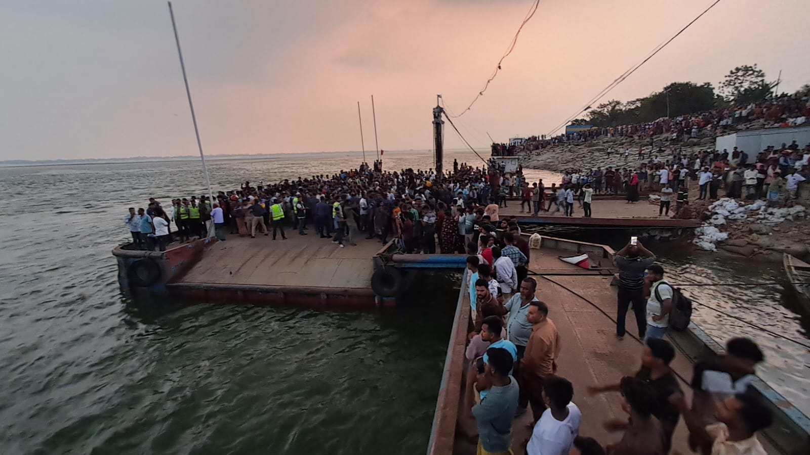 রাজবাড়ীর দৌলতদিয়া ফেরিঘাটে পদ্মার ডুবে যাওয়া বাসটি ৪ ঘণ্টায়ও উদ্ধার করা যায়নি। চল্লিশজনের মতো যাত্রী নিয়ে ডুবে যাওয়া বাসটি থেকে বেঁচে ফিরেছেন মাত্র কয়েকজন। বাকিদের স্বজনরা ভিড় করছেন নদীপাড়ে। তাদের আহাজারিতে ভারী হয়ে উঠেছে আশপাশ।
