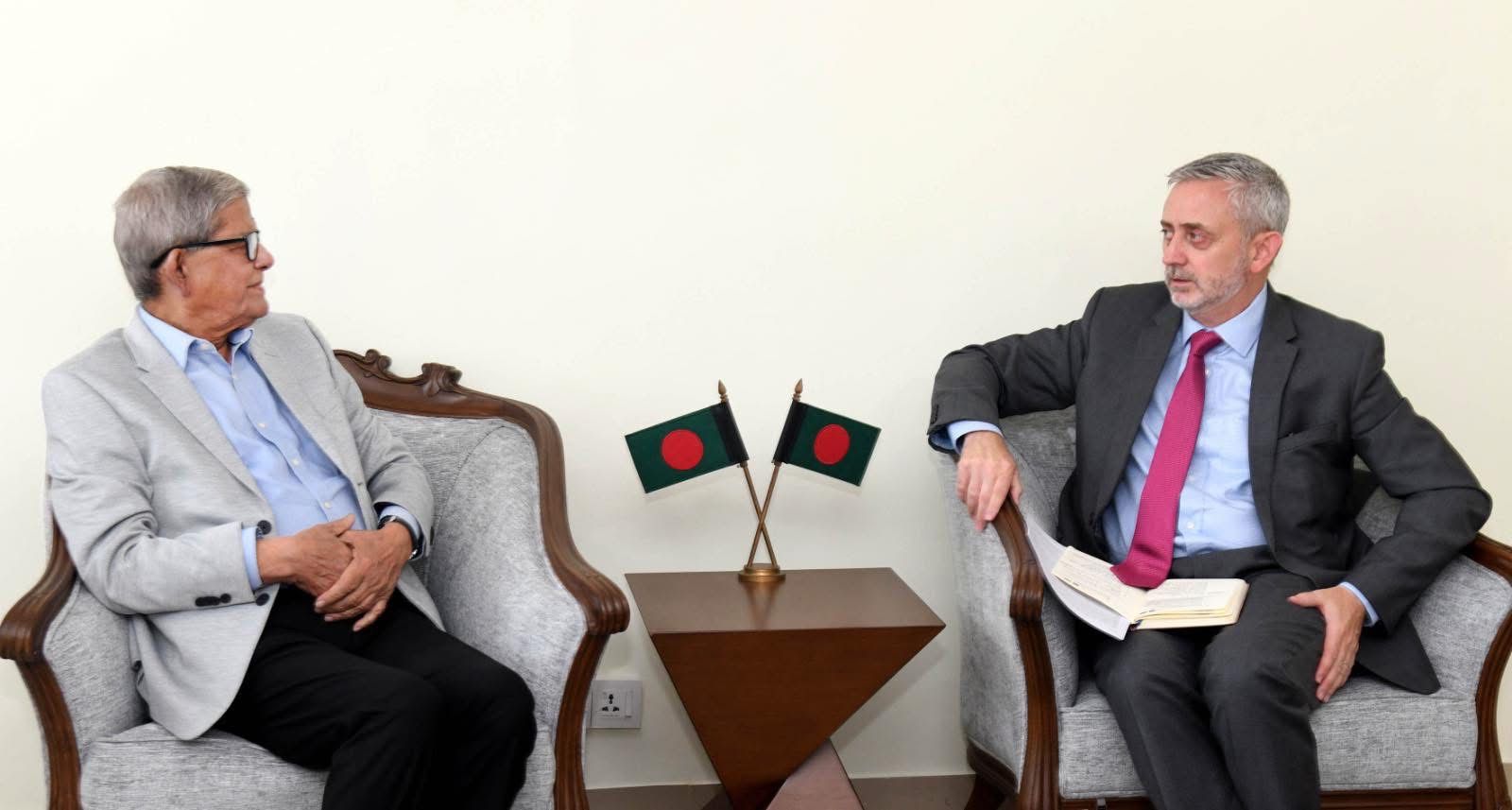 বিএনপি মহাসচিব ও স্থানীয় সরকার, পল্লী উন্নয়ন ও সমবায় মন্ত্রী মির্জা ফখরুল ইসলাম আলমগীরের সঙ্গে সৌজন্য সাক্ষাৎ করেছেন ঢাকায় নিযুক্ত ইউরোপীয় ইউনিয়নের (ইইউ) রাষ্ট্রদূত মাইকেল মিলার। বৈঠকে মন্ত্রী দেশের পানি ব্যবস্থাপনা খাতে ইইউর অভিজ্ঞতা কাজে লাগানোর বিষয়ে আগ্রহ প্রকাশ করেন মন্ত্রী।