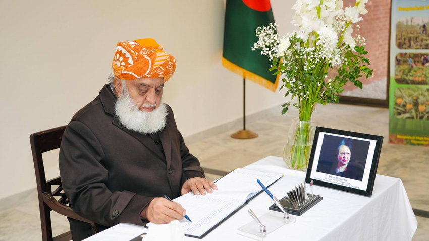 সাবেক প্রধানমন্ত্রী ও বিএনপি চেয়ারপারসন বেগম খালেদা জিয়ার মৃত্যুতে পাকিস্তানে বাংলাদেশ হাইকমিশনে রাখা শোকবইয়ে সই করেছেন মাওলানা ফজলুর রহমান। তিনি পাকিস্তানের রাজনৈতিক দল জমিয়তে উলামায়ে ইসলামের (এফ) সভাপতি ও দেশটির সাবেক মন্ত্রী এবং দেশটির অত্যন্ত প্রভাবশালী রাজনীতিবিদ।