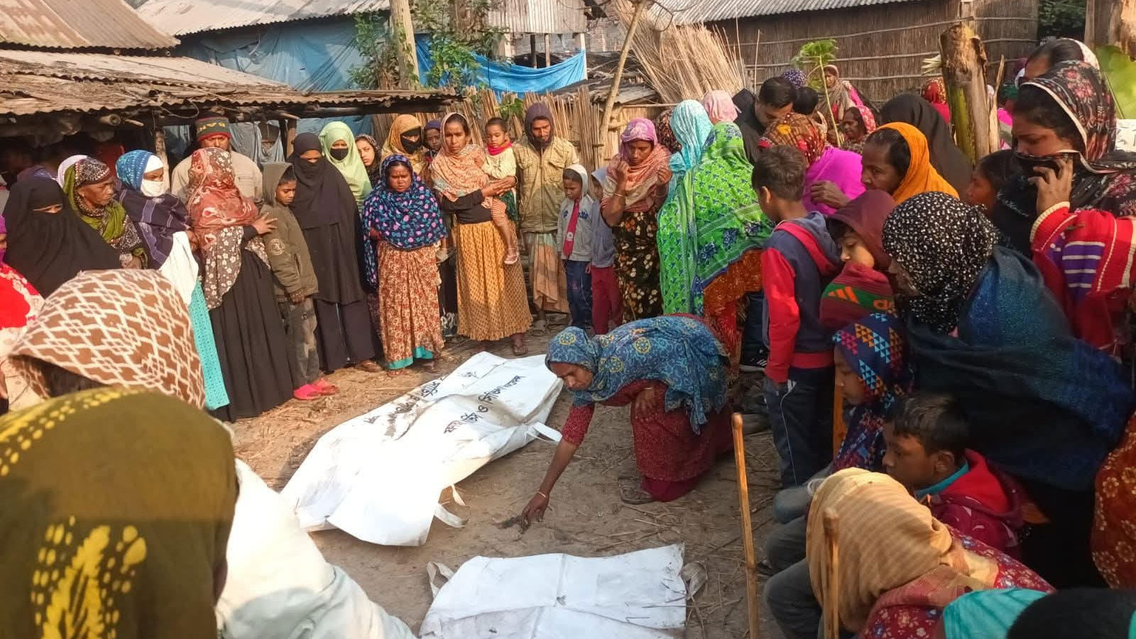 নিহতরা হলেন, স্থানীয় কৃষক রান্টুর স্ত্রী আতিয়া (২৮) এবং তাদের এক বছর বয়সী মেয়ে রওজা। অগ্নিকাণ্ডে রান্টুর মা মর্জিনা বেগম গুরুতর দগ্ধ হন।