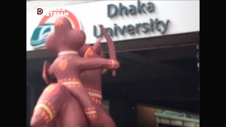 পহেলা বৈশাখ উপলক্ষে ঢাকা বিশ্ববিদ্যালয়ের চারুকলা অনুষদ থেকে বের হওয়া বৈশাখী শোভাযাত্রার চারটি মোটিফ উচ্চতার কারণে ঢাকা বিশ্ববিদ্যালয় মেট্রোরেল স্টেশনে আটকে গেছে।