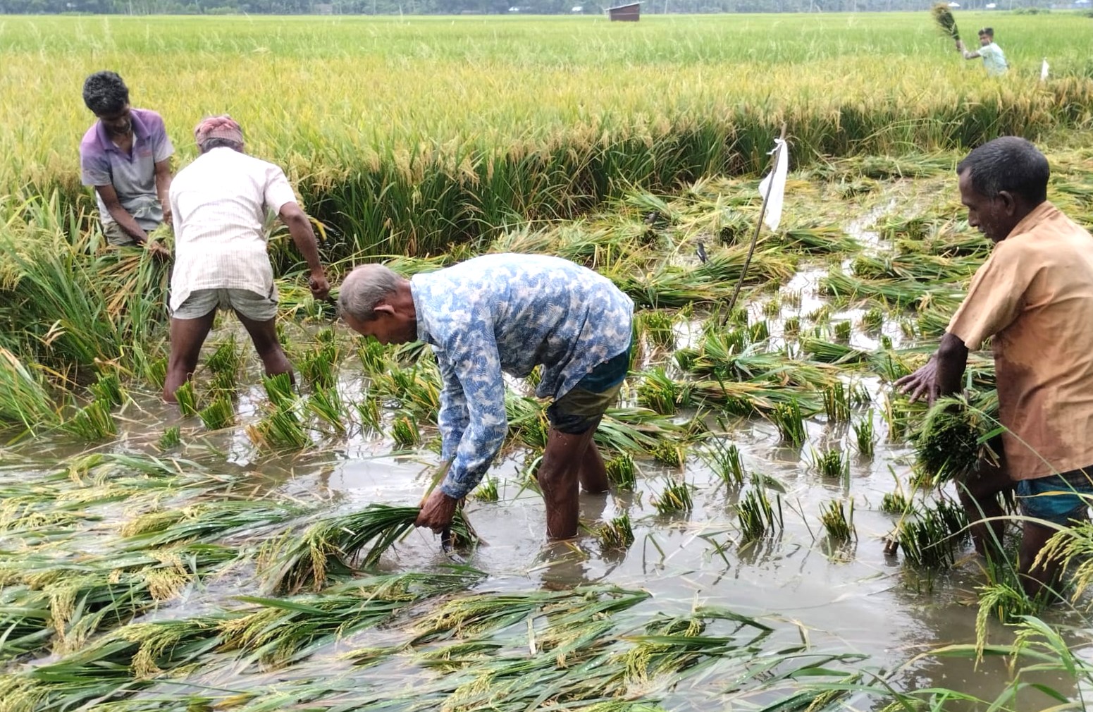 কয়েকদিনের টানা বৃষ্টিতে গাইবান্ধার নিম্নাঞ্চলের শত শত হেক্টর বোরো ধানের জমিতে পানি জমেছে। অনেক জমিতে বাতাসে নুয়ে পড়েছে ধান। এতে আধা পাকা ধান জমিতেই নষ্ট হচ্ছে। এদিকে বজ্রপাতের আতঙ্ক ও শ্রমিক সংকটে জমির ধান কাটতে পারছেন চাষিরা। এর মধ্যে মৌসুম শুরুর আগেই শ্রমিকের মজুরি দাঁড়িয়েছে দৈনিক ৭০০-৮০০ টাকা।