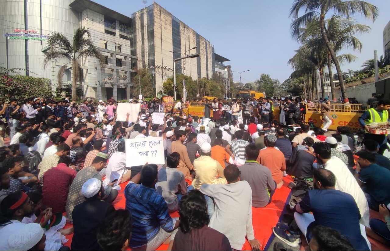 শহীদ শরীফ ওসমান হাদি হত্যার বিচার ও জাতিসংঘের অধীনে তদন্ত দাবিতে রাষ্ট্রীয় অতিথি ভবন যমুনার প্রবেশমুখে টানা অবস্থান কর্মসূচি পালন করছে ‘ইনকিলাব মঞ্চ’৷