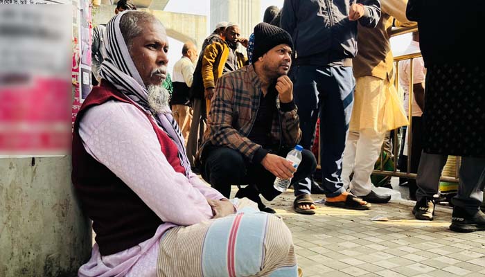 পরনে লুঙ্গি আর পাঞ্জাবি, মাথায় মাফলার মুড়িয়ে মেট্রোরেলের পিলারে হেলান দিয়ে বসে আছেন রিকশা গ্যারেজের শ্রমিক রইচ মিয়া। আজ বুধবার (৩১ ডিসেম্বর) সকাল ১০ টার দিকে খালেদা জিয়ার জানাজার নামাজে অংশ নিতে এলেও মানিক মিয়া অ্যাভিনিউতে ঢুকতে পারেননি।