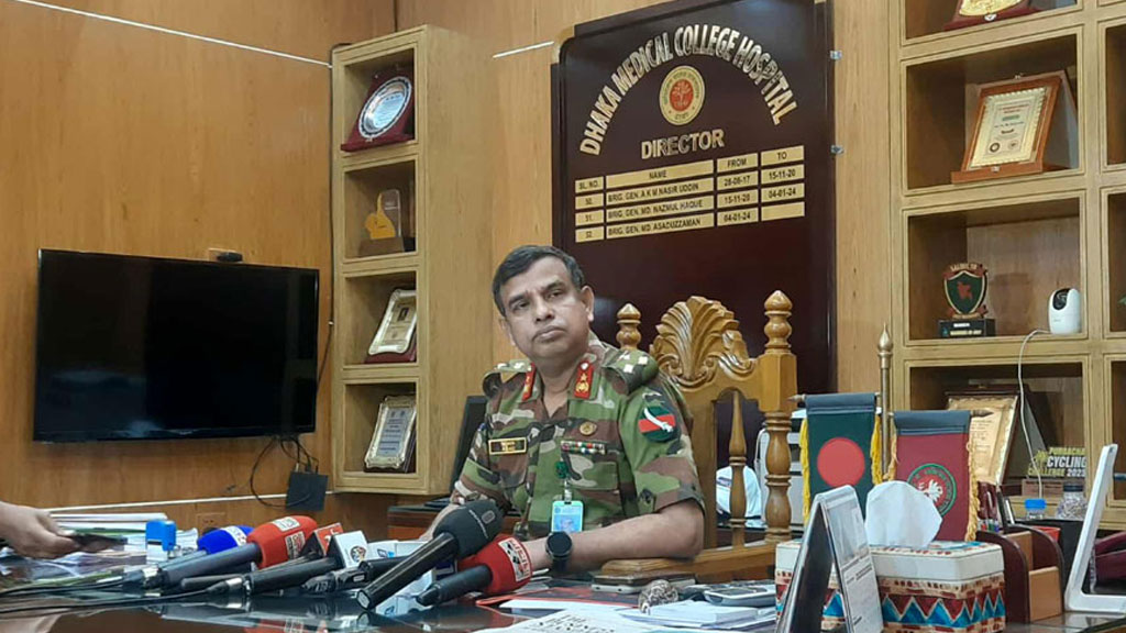 ঢাকা মেডিকেল কলেজ (ঢামেক) হাসপাতালে ইনকিলাব মঞ্চের অনেক নেতাকর্মী চিকিৎসা নিয়েছেন বলে জানিয়েছেন পরিচালক বিগ্রেডিয়ার জেনারেল মো. আসাদুজ্জামান। তিনি বলেন, চিকিৎসা নিতে আসাদের মধ্যে কারও শরীরে গুলি লাগেনি।
