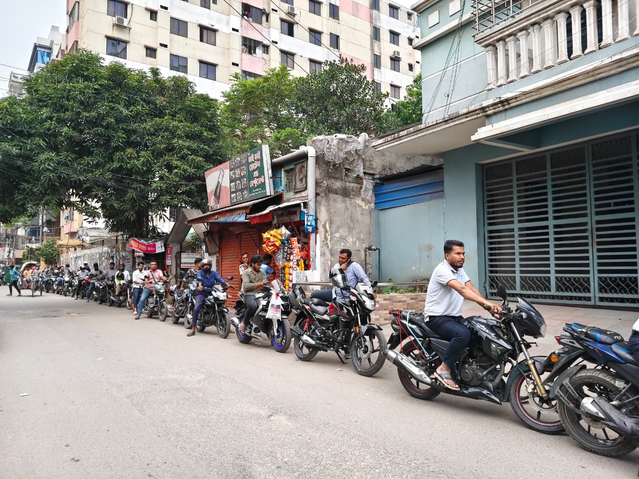 বৈশাখ মাসের তীব্র রোদ। এর মধ্যে কিলোমিটারের বেশি দীর্ঘ লাইনে দাঁড়িয়ে অপেক্ষা জ্বালানি তেলের। রাজধানীতে মোটরসাইকেলসহ গাড়ি চালকদের এটাই এখন নিত্যদিনের সূচি।