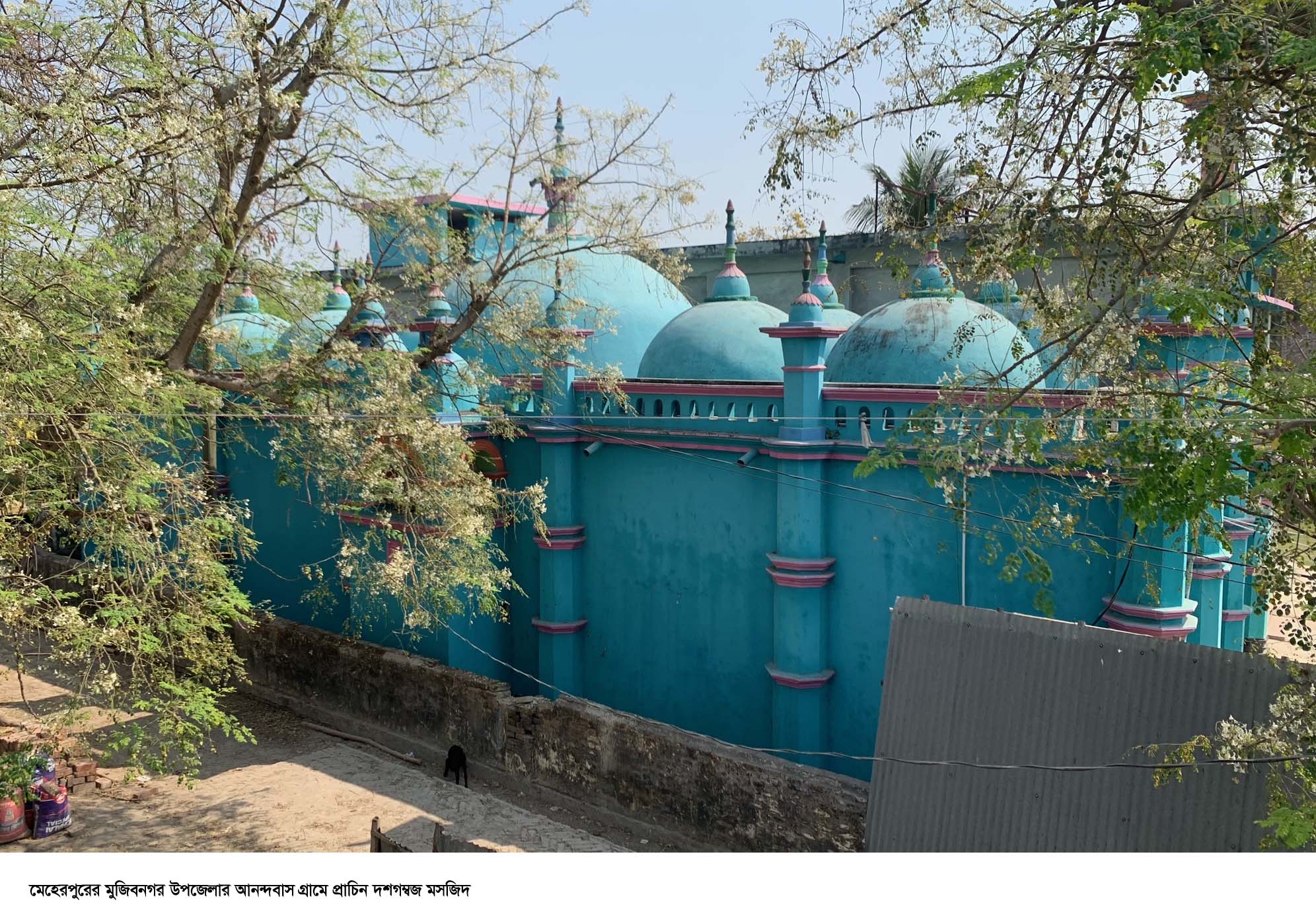 ভারতীয় সীমান্তঘেঁষা মেহেরপুর জেলার মুজিবনগর উপজেলার একটি নিভৃত গ্রাম আনন্দবাস। গ্রামটির সবুজ প্রকৃতি আর শান্ত পরিবেশের বুক চিরে প্রতিদিন যে আজানের ধ্বনি ভেসে আসে, তার উৎস প্রায় দেড়শ বছরের পুরোনো ঐতিহাসিক ‘১০ গম্বুজ মসজিদ’।