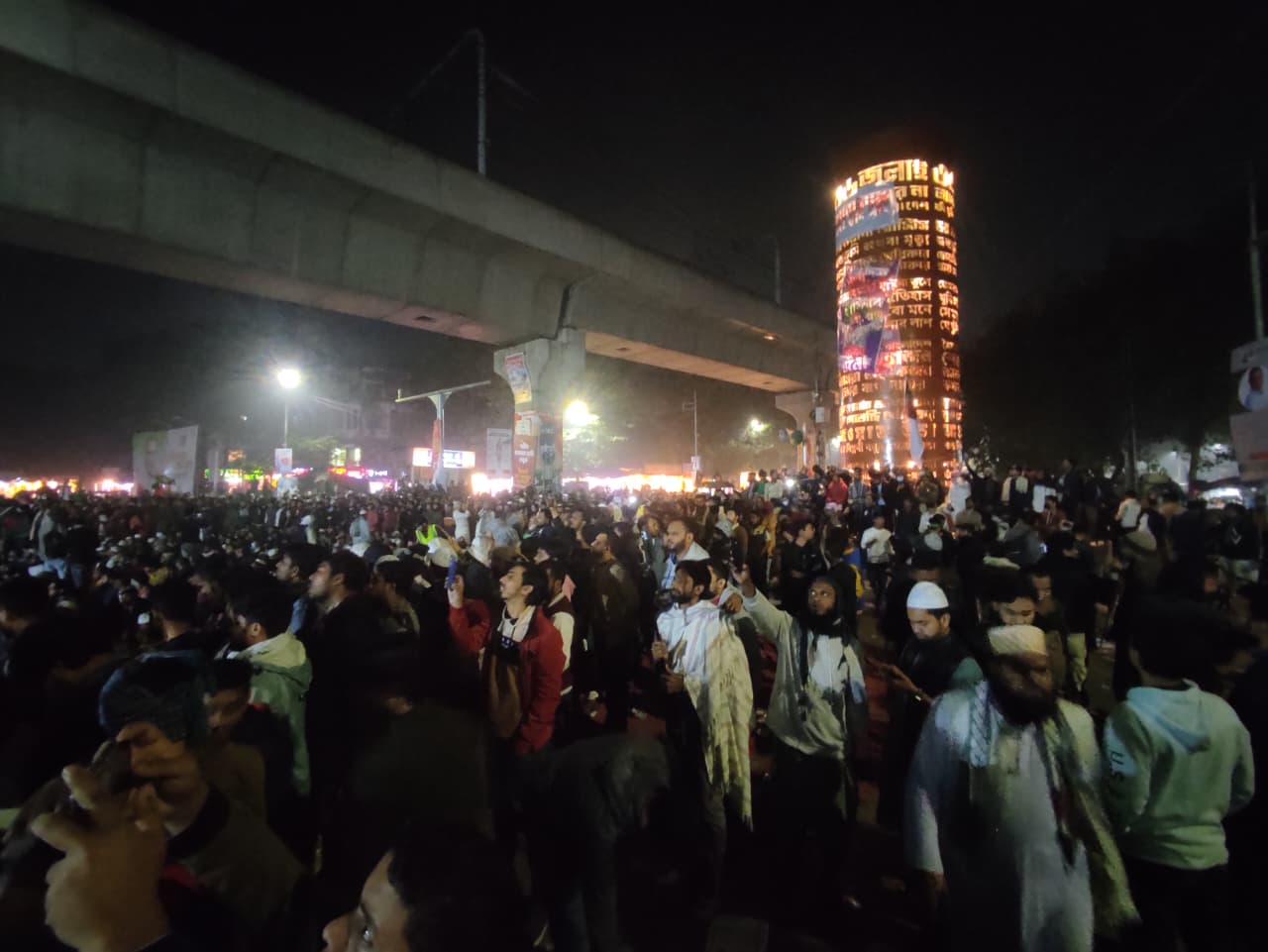 ইনকিলাব মঞ্চের মুখপাত্র শরীফ ওসমান হাদি হত্যার বিচারের দাবিতে রাজধানীর শাহবাগ মোড়ে দ্বিতীয় রাতের মতো অবস্থান কর্মসূচি চালিয়ে যাচ্ছে সংগঠনটির কর্মীরা। তাঁদের দাবি, হাদি হত্যার বিচার না হওয়া পর্যন্ত তাঁরা শাহবাগ মোড় ছাড়বেন না।