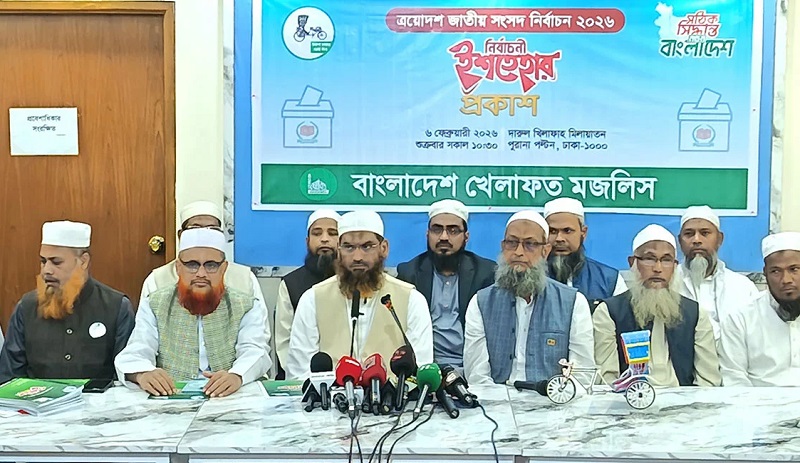 ত্রয়োদশ জাতীয় সংসদ নির্বাচনকে সামনে রেখে ২২ দফা ইশতেহার ঘোষণা করেছে বাংলাদেশ খেলাফতে মজলিস। দলটির ইশতেহারে বলা হয়েছে, রাজনীতি হবে আমানত, ক্ষমতা হবে জবাবদিহিমূলক এবং রাষ্ট্র পরিচালিত হবে আল্লাহভীতি, ন্যায়বিচার ও মানবিকতার ভিত্তিতে।