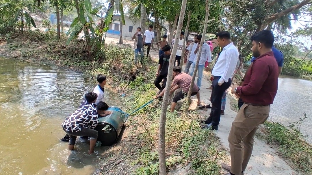 গোপালগঞ্জের কোটালীপাড়ায় পুকুরে ডোবানো অবস্থায় এক ব্যারেল ডিজেল জব্দ করা হয়েছে। রোববার দুপুরে উপজেলার কান্দি ইউনিয়নের হিজলবাড়ি গ্রামের নজরুল মোল্লার বাড়িতে অভিযান চালিয়ে এই জ্বালানি তেল জব্দ করেন ভ্রাম্যমাণ আদালত। পরে তাঁর স্ত্রী আসমা বেগমকে ১০ হাজার টাকা জরিমানা করা হয়েছে।