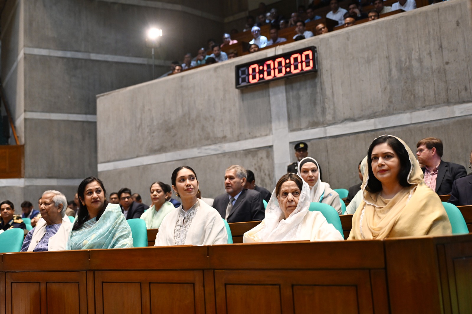 বাম পাশের গ্যালারিতে বিদেশি কূটনীতিকদের মধ্যে উপস্থিত ছিলেন যুক্তরাষ্ট্রের রাষ্ট্রদূত ব্রেন্ট ক্রিস্টেনসেন, যুক্তরাজ্যের হাই কমিশনার সারাহ কুক, চীনের রাষ্ট্রদূত ইয়াও ওয়েন, ভারতের হাই কমিশনার প্রণয় ভার্মা এবং পাকিস্তানের হাই কমিশনার ইমরান হায়দারসহ বিভিন্ন দেশের প্রতিনিধিরা।