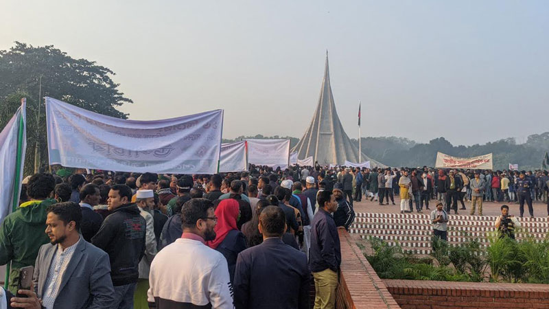 সাদিক কায়েম তিনটি দাবি পড়ে শোনান। তিনি বলেন, ‘আমাদের ভাই ওসমান হাদির ওপর গুলিবর্ষণের সঙ্গে জড়িত প্রত্যক্ষ হামলাকারী, পরিকল্পনাকারী ও সহায়তাকারী সকল সন্ত্রাসীকে গ্রেপ্তার করতে হবে। গোয়েন্দা সংস্থাসহ রাষ্ট্রের সকল সংশ্লিষ্ট অর্গানকে দ্রুত জবাবদিহির আওতায় আনতে হবে এবং যাদের গাফিলতি প্রমাণিত হবে, তাদের বিচারের মুখোমুখি করতে হবে। একই সঙ্গে যারা এই হামলাকে সমর্থন যুগিয়েছে, হাদি ভাই ও জুলাই বিপ্লবীদের হত্যাযোগ্য করে তুলেছে, সেই কালচারাল ফ্যাসিস্টদের সামাজিকভাবে সম্পূর্ণ বয়কট করতে হবে। এসব ব্যবস্থা অনতিবিলম্বে দৃশ্যমান করতে হবে।’