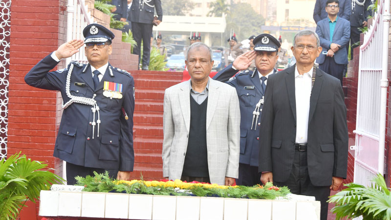 মহান বিজয় দিবসে রাজধানীর রাজারবাগ পুলিশ লাইনস স্মৃতিসৌধে শহীদ পুলিশ সদস্যদের প্রতি শ্রদ্ধা জানিয়েছেন স্বরাষ্ট্র উপদেষ্টা লেফটেন্যান্ট জেনারেল (অব.) মো. জাহাঙ্গীর আলম চৌধুরী এবং ইন্সপেক্টর জেনারেল অব পুলিশ (আইজিপি) বাহারুল আলম।