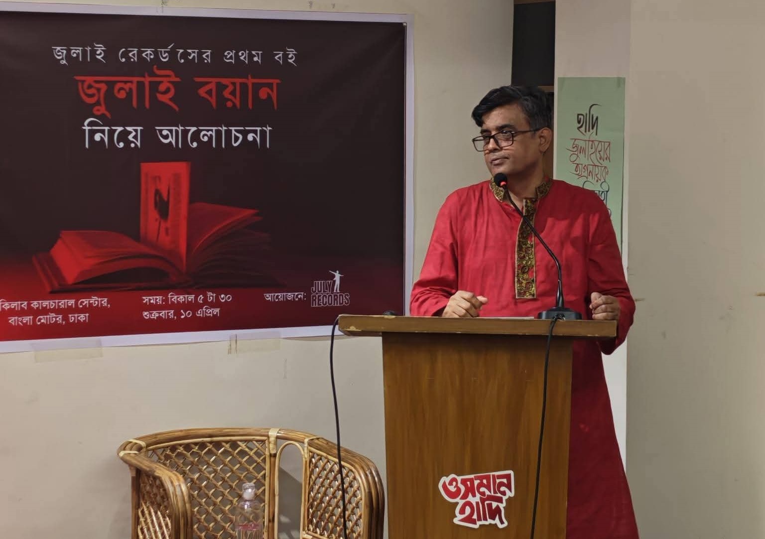 ‘জুলাই রেকর্ডস’-এর প্রথম প্রকাশনা ‘জুলাই বয়ান: শহীদ পরিবার, আহত ও প্রত্যক্ষদর্শীদের ইন্টারভিউ’ বইটির ওপর এক আলোচনা সভা অনুষ্ঠিত হয়েছে। শুক্রবার (১০ এপ্রিল) গ্রন্থটিকে কেন্দ্র করে রাজধানীর বাংলামোটরের ইনকিলাব কালচারাল সেন্টারে আড্ডার আয়োজন করে টিম জুলাই রেকর্ডস।