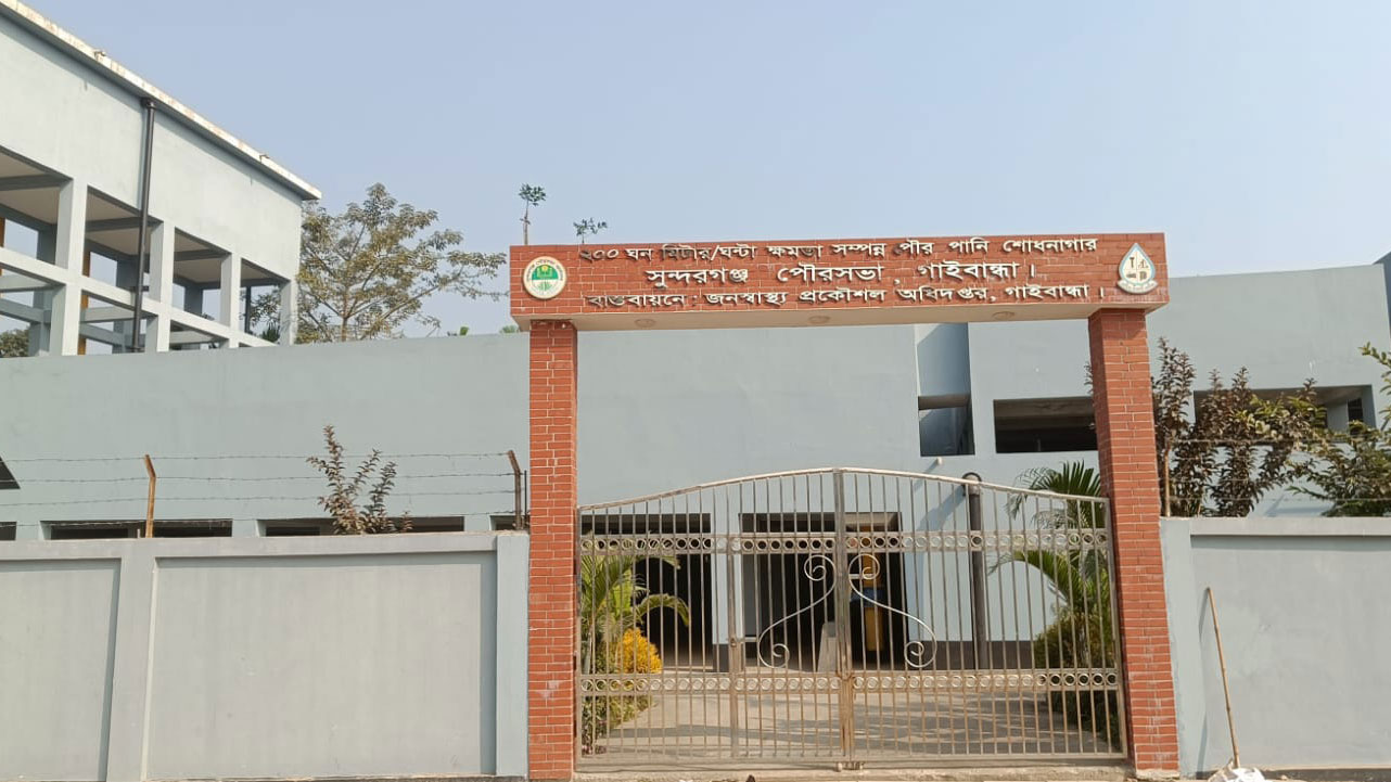 গাইবান্ধার সুন্দরগঞ্জ পৌরসভায় দেড় বছর আগে একটি পানি শোধনাগার নির্মাণ করা হলেও মাত্র দুই মাস পানি সরবরাহের পর তা বন্ধ হয়ে গেছে। এতে বিশুদ্ধ পানি সংকটে পড়েছেন ৬০০ পরিবারের অন্তত ২ হাজার মানুষ। এ অবস্থার জন্য পৌর কর্তৃপক্ষের অবহেলাকে দায়ী করছেন পৌরবাসী।