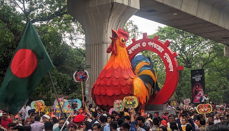 বাংলা নববর্ষ ১৪৩৩ উপলক্ষে ঢাকা বিশ্ববিদ্যালয়ের চারুকলা অনুষদ আয়োজিত বৈশাখী শোভাযাত্রায় মঙ্গলবার (১৪ এপ্রিল) সকালে নানা শ্রেণি-পেশার মানুষের ঢল নেমেছে। নতুন বছরকে বরণের উৎসবে মেতেছে সবাই।