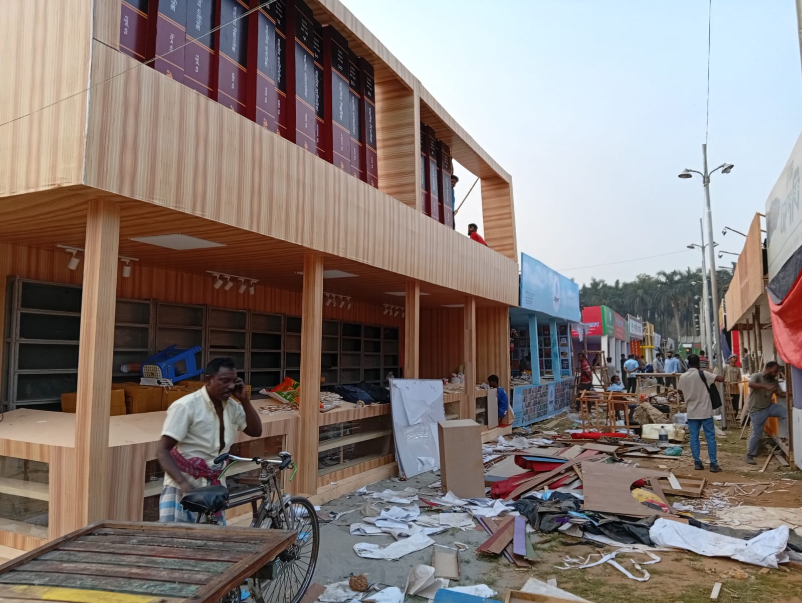 অমর একুশে বইমেলা শুরু হলেও প্রাঙ্গণে এখনও অনেক স্টলের প্রস্তুতি সম্পন্ন হয়নি। শেষ মুহূর্তের ব্যস্ততায় মেলা প্রাঙ্গণে এখন মূলত রঙের কাজই বেশি চলছে, যদিও স্টলগুলোতে বই আনা হয়ে গেছে।