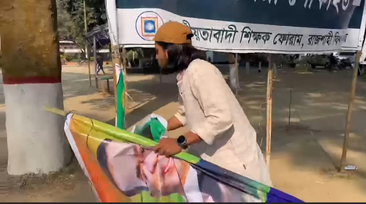 বিএনপির চেয়ারম্যান নির্বাচিত হওয়ায় তারেক রহমানকে অভিনন্দন জানিয়ে রাজশাহী বিশ্ববিদ্যালয় (রাবি) ক্যাম্পাসে টাঙানো ব্যানার ছিঁড়ে ফেলেছেন রাকসু জিএস সালাহউদ্দিন আম্মার। রোববার (১৮ জানুয়ারি) দুপুরে বিশ্ববিদ্যালয়ের প্যারিস রোডে জিয়া পরিষদের ওই ব্যানার তিনি নিজ হাতে ছিঁড়ে ফেলেন।