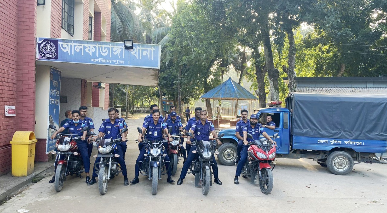 মহড়ায় নেতৃত্ব দেওয়া আলফাডাঙ্গা থানার এসআই লিয়াকত হোসেন বলেন, ‘আসলে হেলমেট পড়া উচিৎ ছিল। কিন্তু হেলমেটটা পড়লে ওইভাবে আমরা যে মুভ করছি, বুঝা যেত না। গাড়ি-পোশাক দেখেইতো মানুষ পুলিশ সদস্যদের চিনতে পারে।’