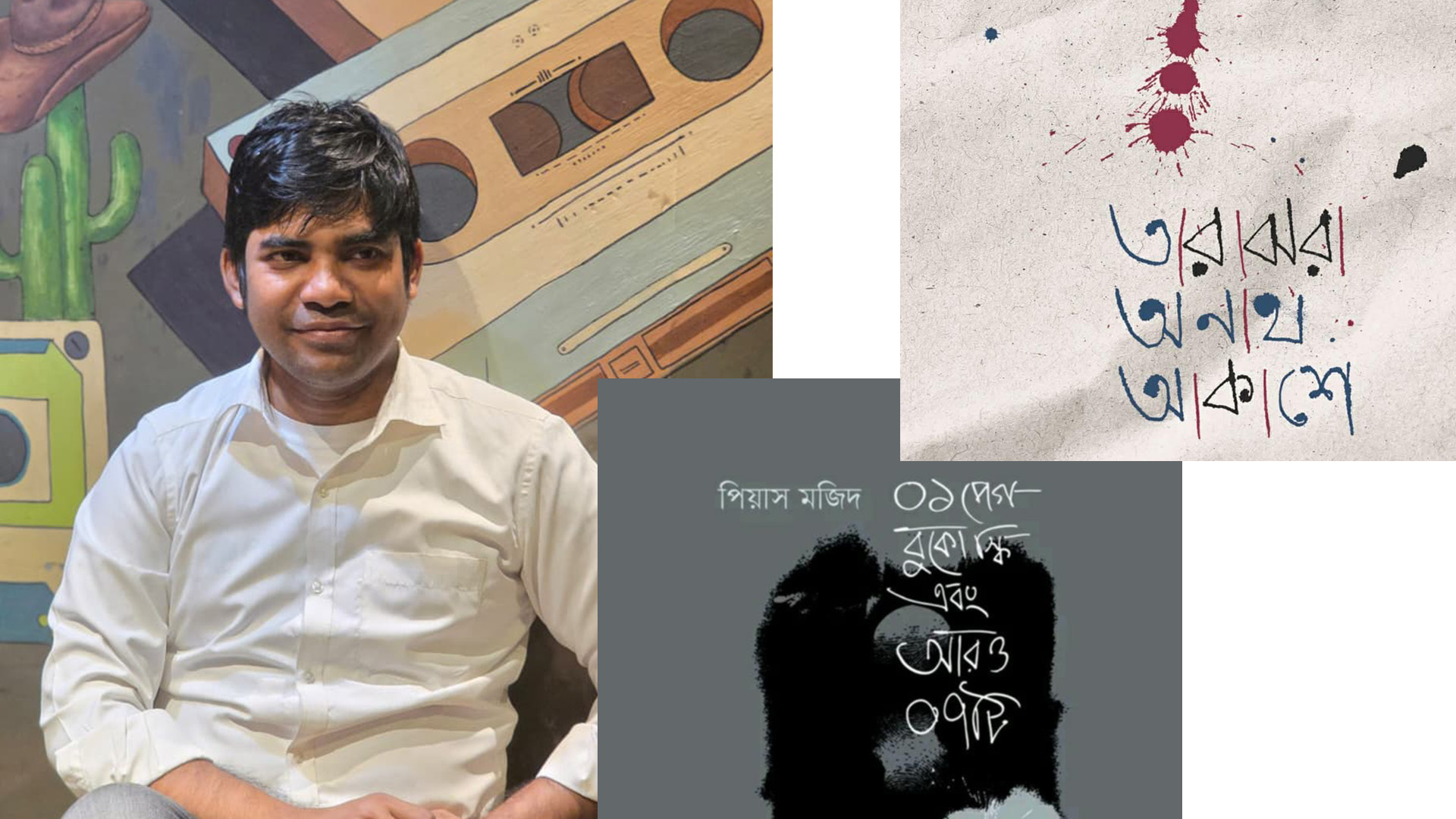 পিয়াস মজিদ: এবারের বইমেলায় আমার দুটি মৌলিক নতুন কবিতাগ্রন্থ এসেছে। কবি প্রকাশনী থেকে টানাগদ্যকবিতার বই 'তারাঝরা অনাথ আকাশে' আর গ্রন্থিক প্রকাশন থেকে আটটি দীর্ঘকবিতার বই '০১ পেগ বুকোস্কি এবং আরও ০৭টি'। বই দুটোর খসড়ার সঙ্গে আমার যাপন অনেকদিনের। দীর্ঘ পাণ্ডুলিপি কাটাকুটিতে হ্রস্ব হয়েছে কিন্তু মৌল মর্ম ভ্রুণাবস্থা থেকে আত্মপ্রকাশ অব্দি একই আছে৷ আমি মনে করি বই দুটি আমার ইতিপূর্বেকার বইগুলো দ্বারা তৈরি কবি-ইমেজারি চুরমার করবে। বইদুটোর সঙ্গে ভ্রমণ আমার নিজের কাছেই বেশ কৌতুহলোদ্দীপক৷ বারবার মনে হয়েছে, কারা এইসব ছাইপাশ কবিতার লেখক: জনাব পিয়াস, শ্রীযুক্ত মাল্যবান নাকি মিস্টার মার্সো?