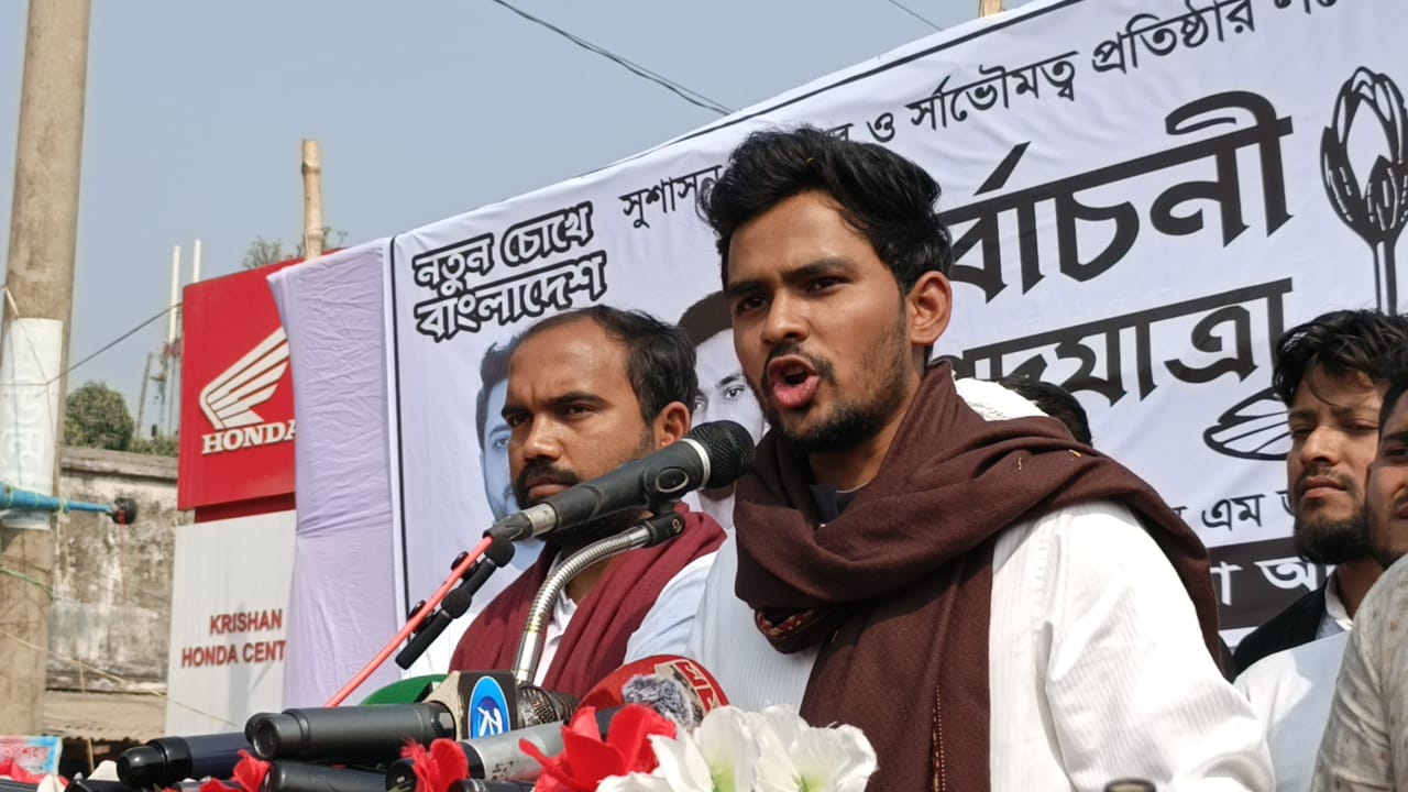 সিংড়ায় এক পদযাত্রায় এনসিপি মুখপাত্র আসিফ মাহমুদ সজীব ভূঁইয়া বলেছেন, ‘নির্বাচন কমিশনে যখন ১১ দলীয় নির্বাচনী ঐক্য জোটের পক্ষ থেকে কোনো অভিযোগ যায়, সেই অভিযোগের কোনো ব্যবস্থা নেওয়া হয় না। অথচ বিএনপি প্রার্থীকে শোকজ করার কারণে, আমরা দেখছি, ওই দিন যেতে না যেতেই সেই অফিসারকে উইড্রো করা হয়েছে।’