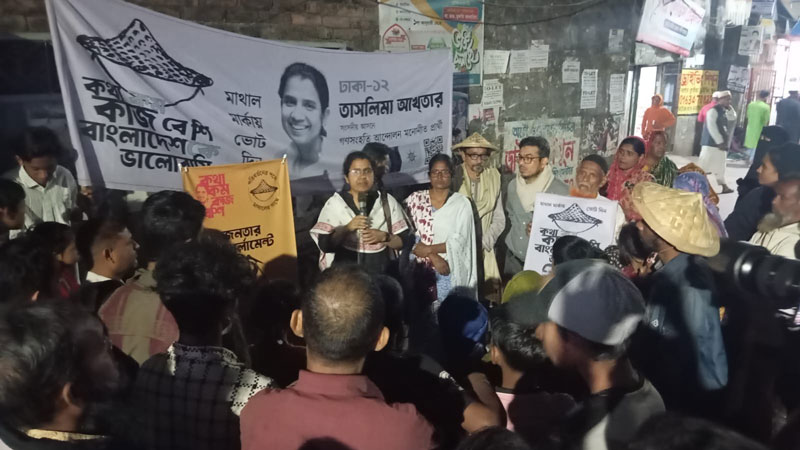 ‘কথা কম কাজ বেশি, বাংলাদেশকে ভালোবাসি’ স্লোগান নিয়ে রাজধানীর তেজগাঁওয়ের বেগুনবাড়ী এলাকায় ‘ওপেন মাইক’ অনুষ্ঠান শুরু করেছেন তাসলিমা আখতার। তিনি ঢাকা-১২ আসনে গণসংহতি আন্দোলনের মনোনীত সংসদ সদস্য প্রার্থী। ত্রয়োদশ জাতীয় সংসদ নির্বাচনে প্রতিদ্বন্দ্বিতা করছে ‘মাথাল’ প্রতীক নিয়ে।