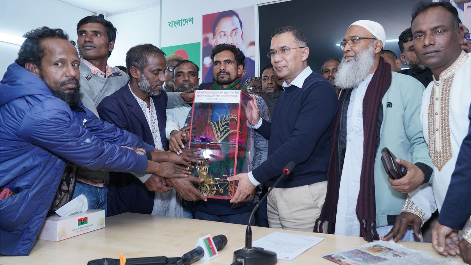 রিকশা, ভ্যান ও অটোরিকশা শ্রমিক নেতাদের সঙ্গে মতবিনিময় করেছেন বিএনপির চেয়ারম্যান তারেক রহমান। মঙ্গলবার (১৩ জানুয়ারি) সন্ধ্যায় রাজধানীর গুলশানে চেয়ারপারসনের রাজনৈতিক কার্যালয়ে এ সভা অনুষ্ঠিত হয়।