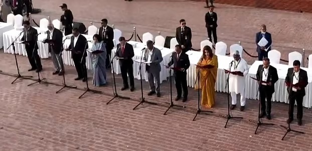 বিএনপির চেয়ারম্যান তারেক রহমানের নেতৃত্বে ৫০ জনের নতুন মন্ত্রিসভা গঠন হয়েছে। মঙ্গলবার (১৭ ফেব্রুয়ারি) বিকেলে জাতীয় সংসদ ভবনের দক্ষিণ প্লাজায় প্রধানমন্ত্রী হিসেবে শপথ নেন তারেক রহমান। পরে পূর্ণাঙ্গ মন্ত্রী হিসেবে ২৫ ও ২৪ জন প্রতিমন্ত্রী হিসেবে শপথ নেন।